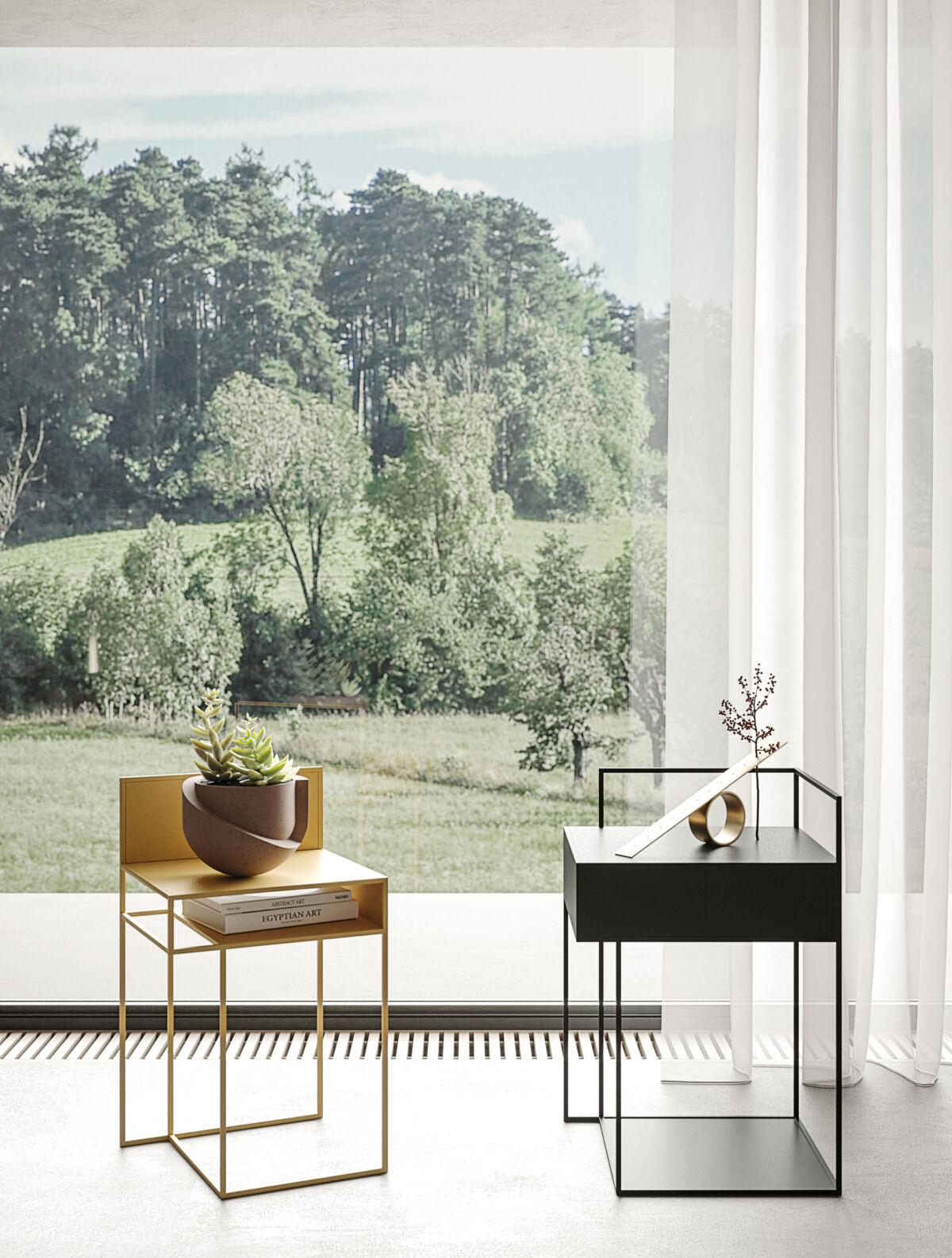 Set of coffee tables in painted metal.