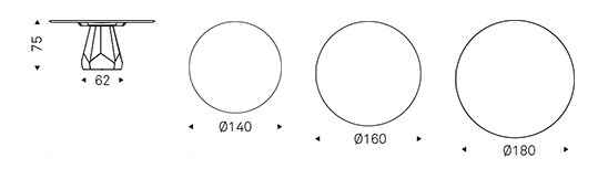 The Zermatt family of tables features a central base packed with corners and verticals. More precisely, it is formed of 15 sides that repeat around the central column with geometric precision. Each side of this prism appears to be a different colour, as light is reflected in varying intensity depending on the angle.