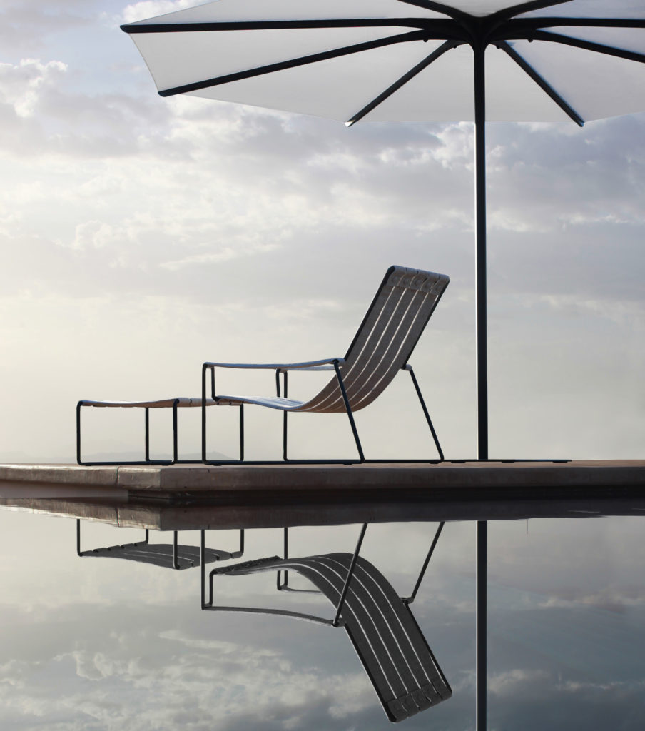 Five years ago, the Royal Botania Palma umbrella was the attraction of the Salone del Mobile in Milan. The smooth organic lines of this first strutless automatic garden umbrella were so appreciated that the Red Dot Award jury gave Palma the Best of the Best prize and featured it on the front cover of their yearbook. Now Bloom has seen the light of day. It retains the clean lines and organic shape of the Palma but is technically a completely different masterpiece. To allow for bigger sizes of canopy, the pneumatic system of the Palma has been replaced by a lever-operated spindle system in Bloom. When the spindle is activated, the upper part of the hub is pulled down to join the lower one, while all the small supporting ribs join nicely into one solid-looking, organically-shaped piece. As such, the Bloom looks like a strutless umbrella, although in fact it is not. Seen from below it gives the umbrella the elegant look of a flower in bloom. Hence the name