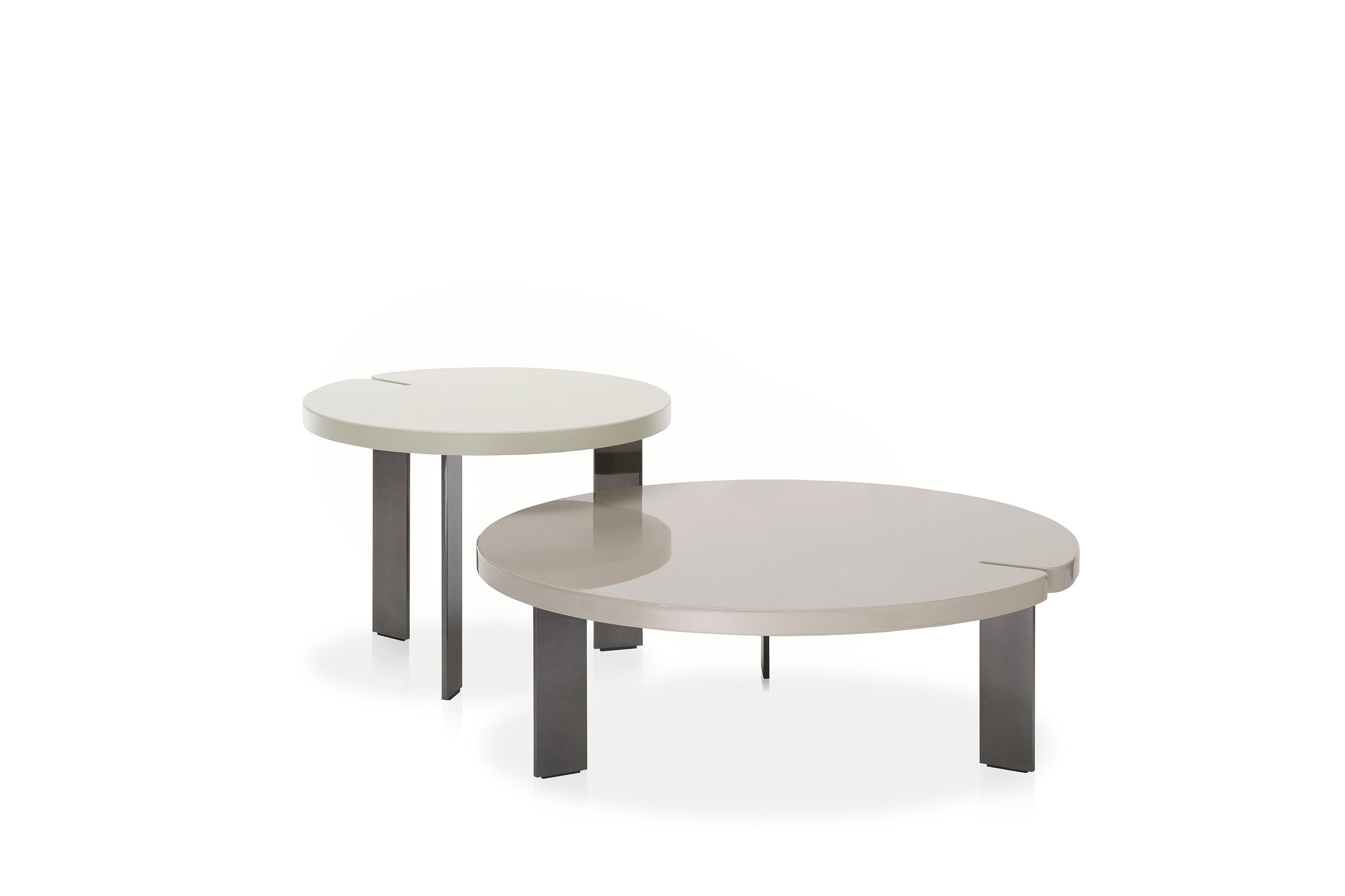 Produced in glossy or matt lacquered mdf, the elements are available in ivory and sand.