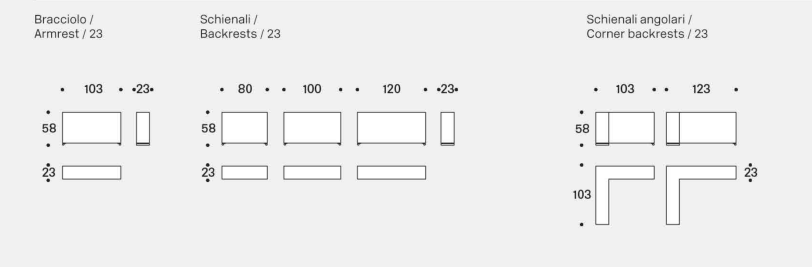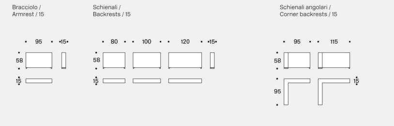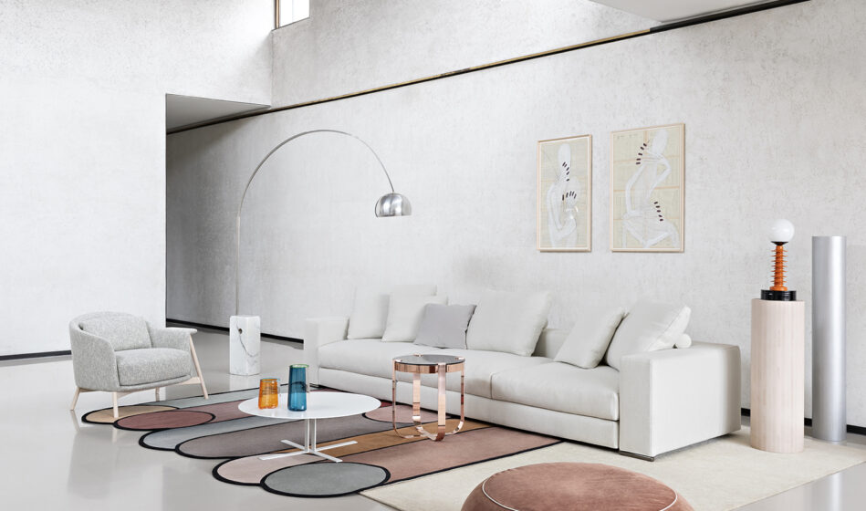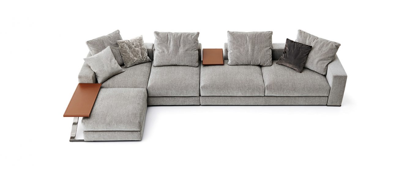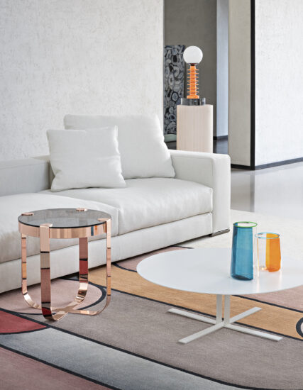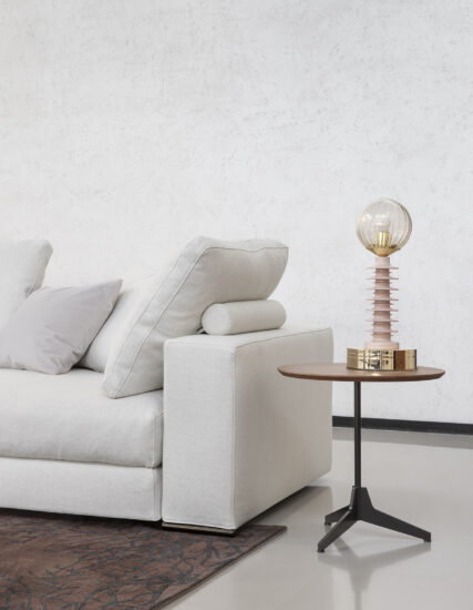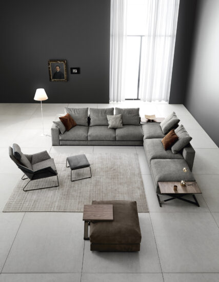Ananta Class is an informal and versatile modular range that allows endless combinations of the independent backrests and bases available in 80, 120, 160, 200 and 240 cm lengths. The collection, whose very name evokes the idea of infinity, is based on the idea of simplified construction: free from the constraints of armrests and backrests, the seating can be arranged to suit individual needs. It is completed with a side table available in two sizes. The black chrome rest holds up a table top available either in walnut veneer or regenerated leather. The line offers a new, individualistic, modern way of shaping things to fit people’s needs. Fully removable covers.