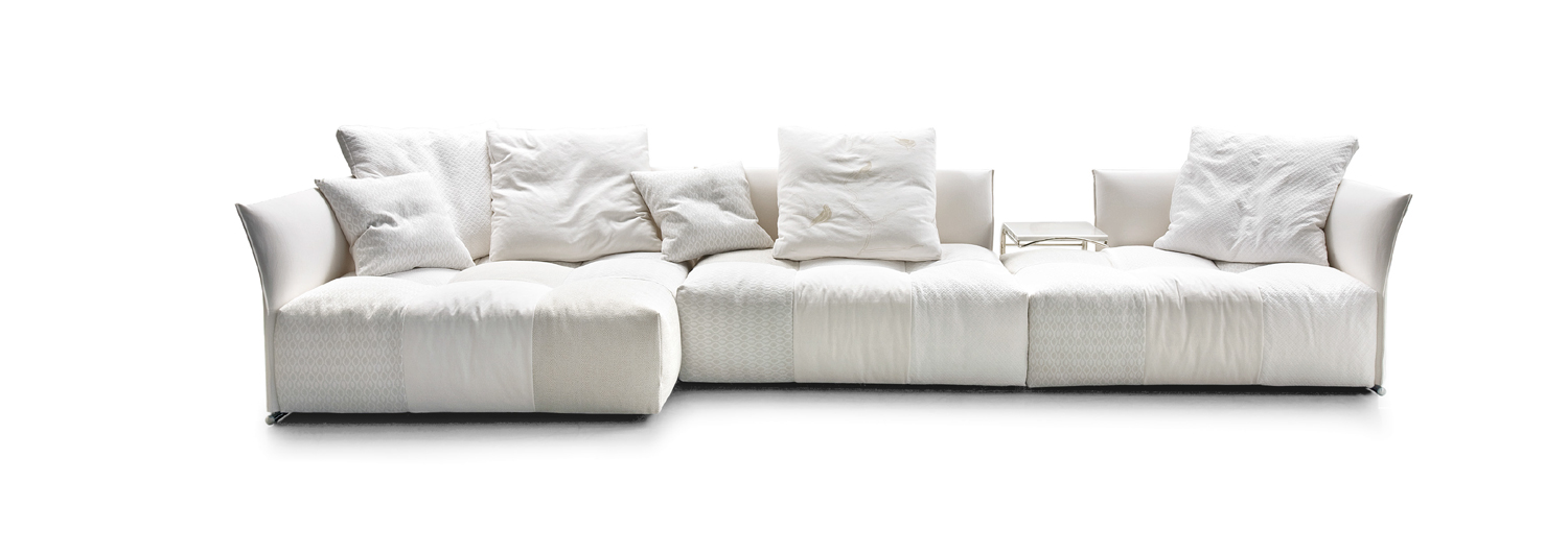 From the creativity of Sergio Bicego comes Pixel sofa, featuring a series of elements that can be freely combined, thanks to an exclusive connector created by Saba Italia. In this way the arm- and backrests can be removed from the bases to form endless new arrangements. The feather-padded seat cushions feature special quilted covers which highlight the limitless possibilities for mixing the fabrics in the Saba collection to create a new and unique sofa every time. Thanks to the distinctive shape of the back- and arm-rests, the overall width and depth of the sofa are surprisingly small, without penalizing its handsome good looks. Pixel sofa has been carefully, ergonomically designed to provide the maximum comfort in a highly refined and stylish product. Fully removable covers.