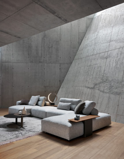 My Taos is the sofa design that best communicates Saba’s identity. Its recent redesign is based on the 4 pillars of the company: memory, comfort, design and poetry. Memory is evident in the new My Taos in the integrity towards the original design, maintaining the fluidity of the pouf structures. Improved comfort has redefined the heights of the back structures and improved the ergonomics using the latest generation of materials. This new design has also altered the fold out side tables and new cylindrical support cushions. The element of poetry in the updated design has rounded the forms softening all the edges and lines. My Taos sofa epitomises how an excellent design stands the test of time.