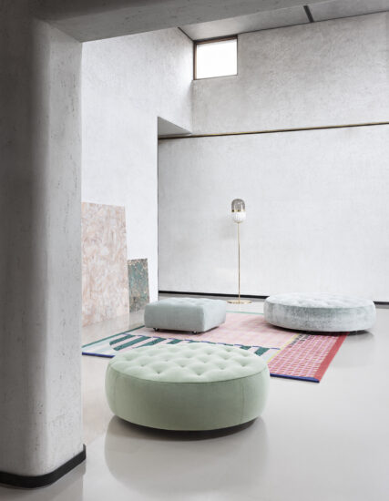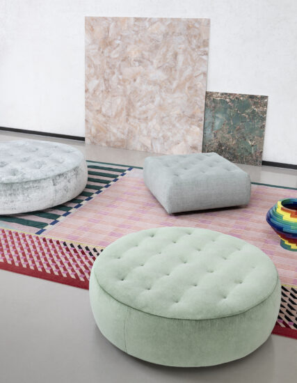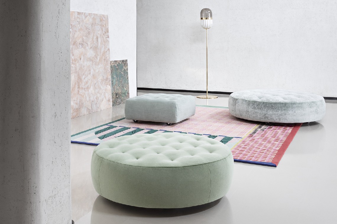 A new evolution of Saba poufs, Cookie are available in a round or square format and are characterized by the light quilting on the seating area. The Cookie poufs are fun and independent elements, that can exist on their own or be placed nearby other products. The cover is completely removable.
