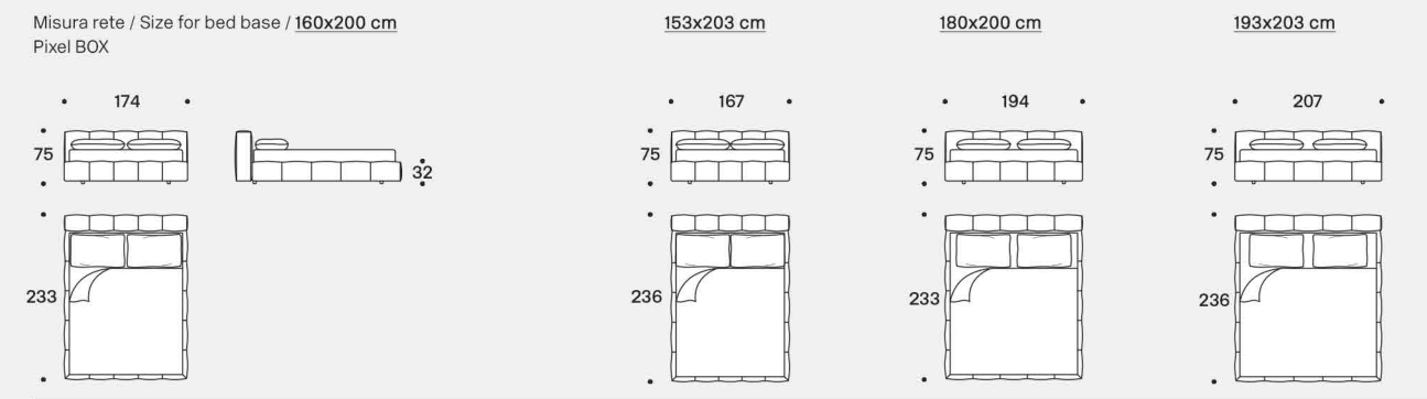 Pixel Box Large is the most voluminous option in the Pixel bed collection, completely enclosed by the soft and ample bed frame. Pixel Box Large most evidently recalls the iconic and generous rounded shapes of Saba’s Pixel sofa.