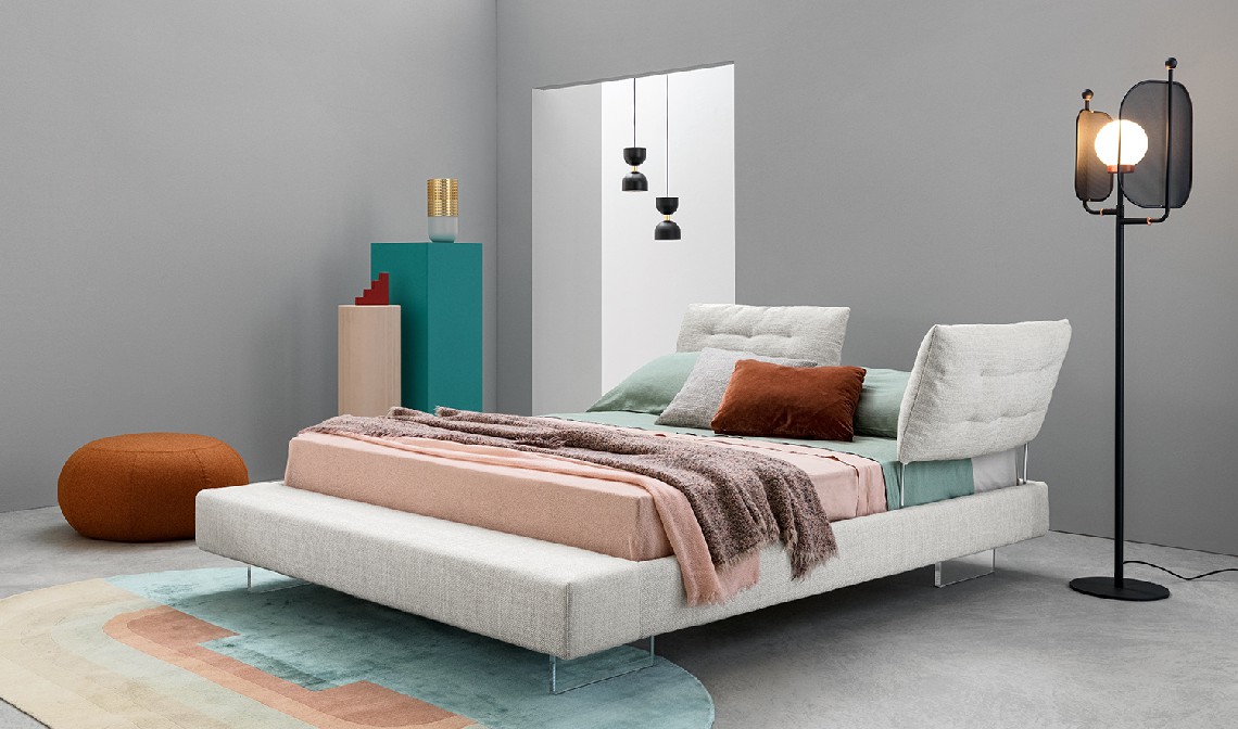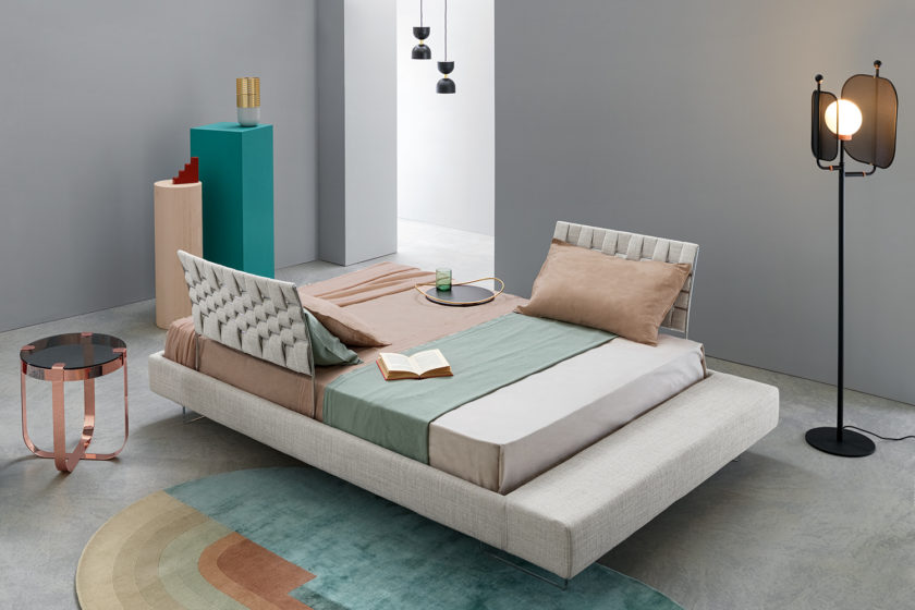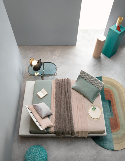 Limes T Large follows the same stylistic line of the Limes collection and is characterized by a functional integrated padded shelf, which depending on the panels positioning, can add an extra area to the headboard or footboard.