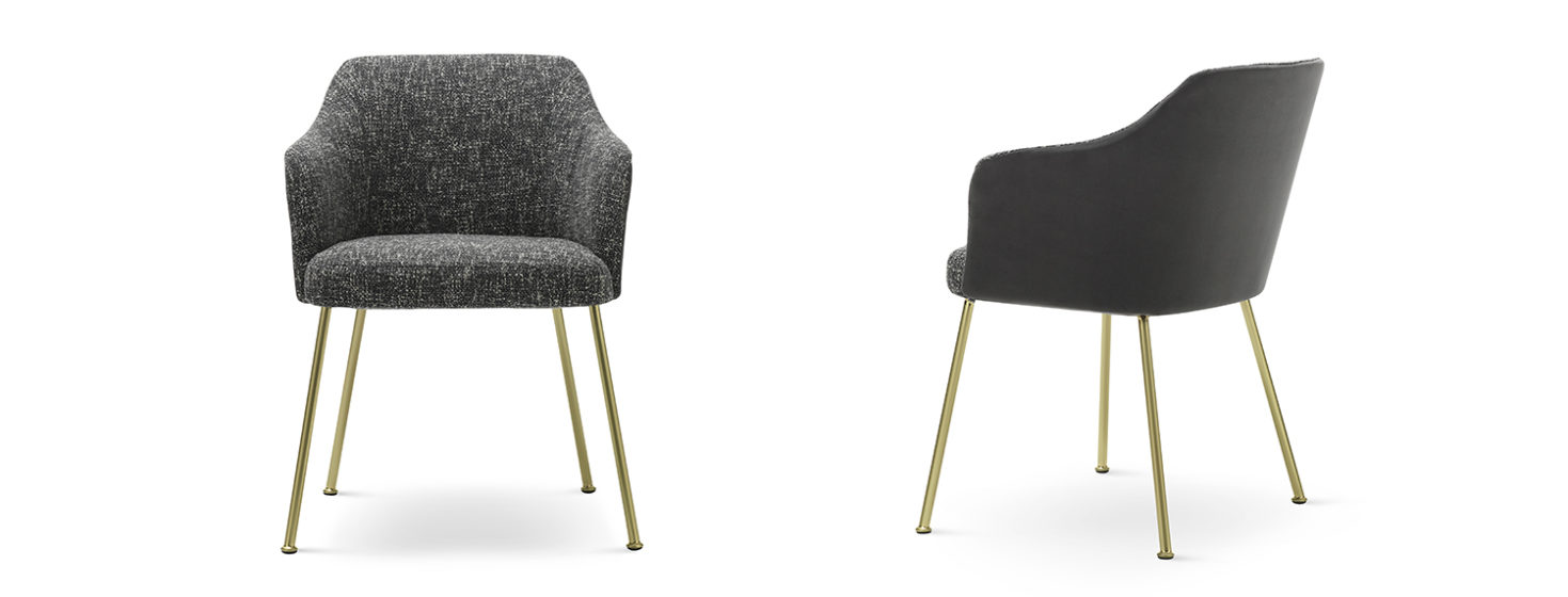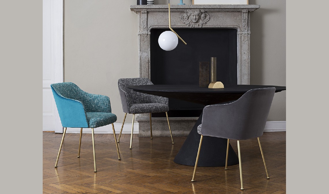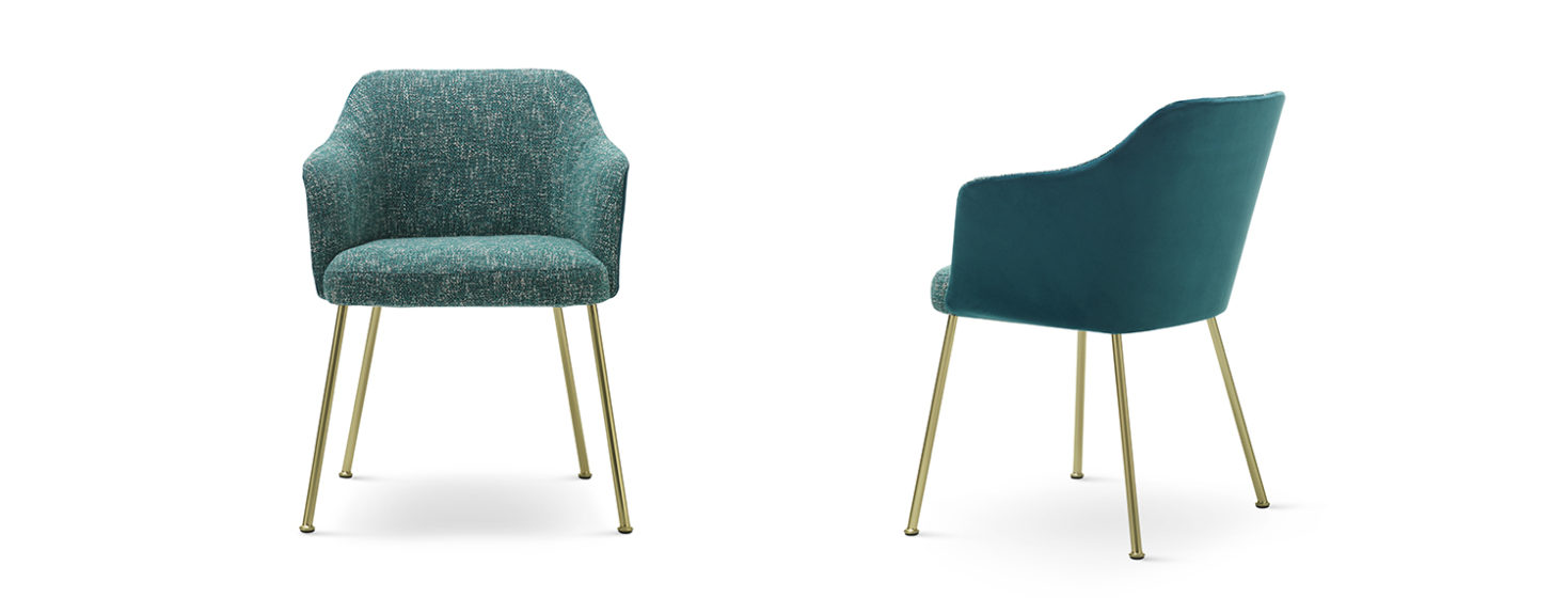 A whimsical, feminine seat: discreet and refined, calm and simple. The rounded shape is accentuated by the sumptuous fabric, velvet on the outside and boucle jacquard on the inside.