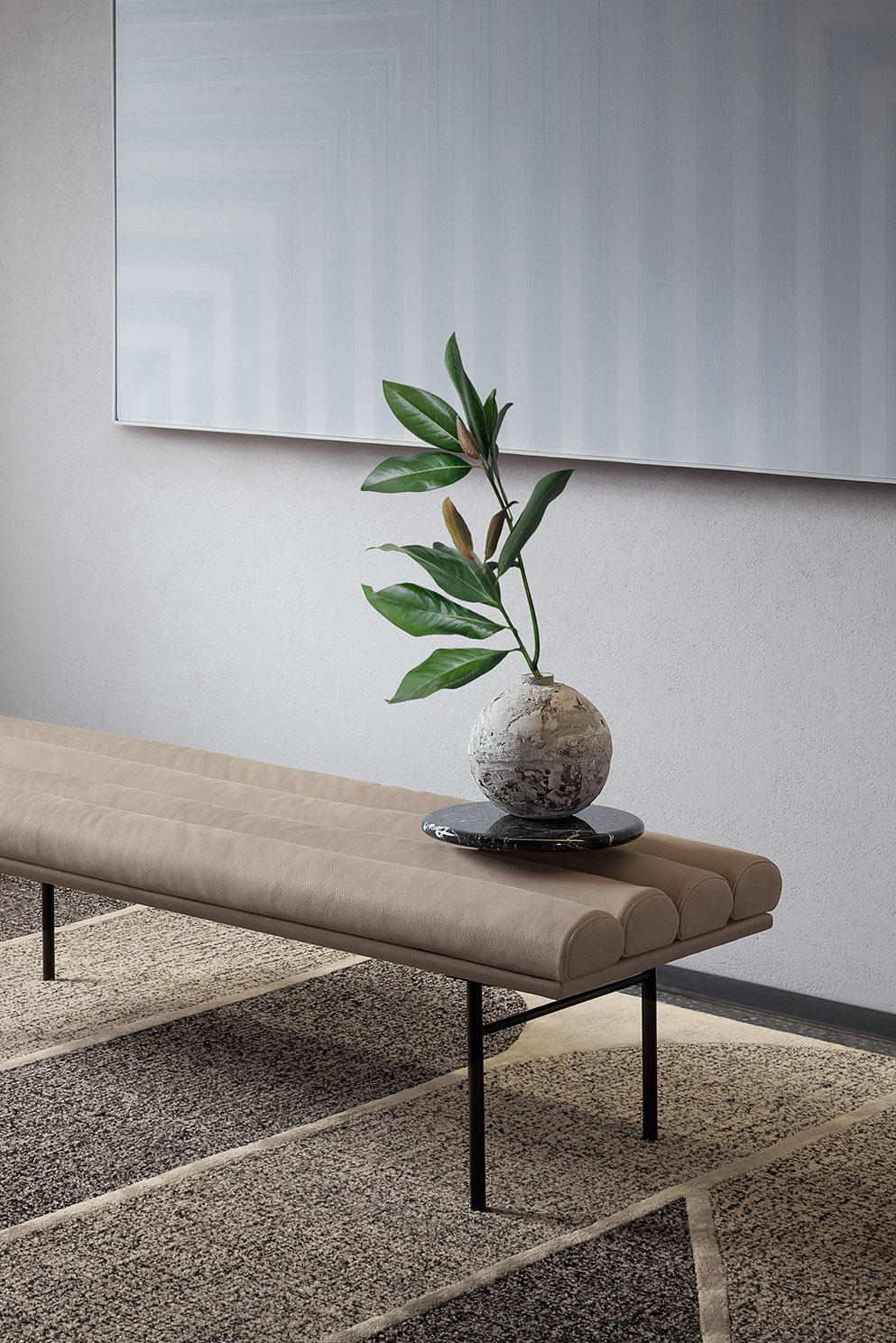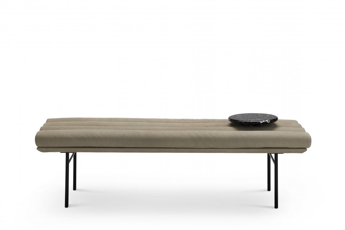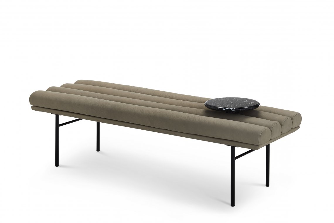 The Pan Flute bench, is inspired by the benches that have always been present in waiting rooms or along the platforms of the tracks of all Italian railway stations. Simple, sober and comfortable, Pan Flute is a multifunctional and elegant bench that adapts to a variety of domestic and contract settings. Available with matt black or black nickel structure, it comes with an optional marble valet tray.