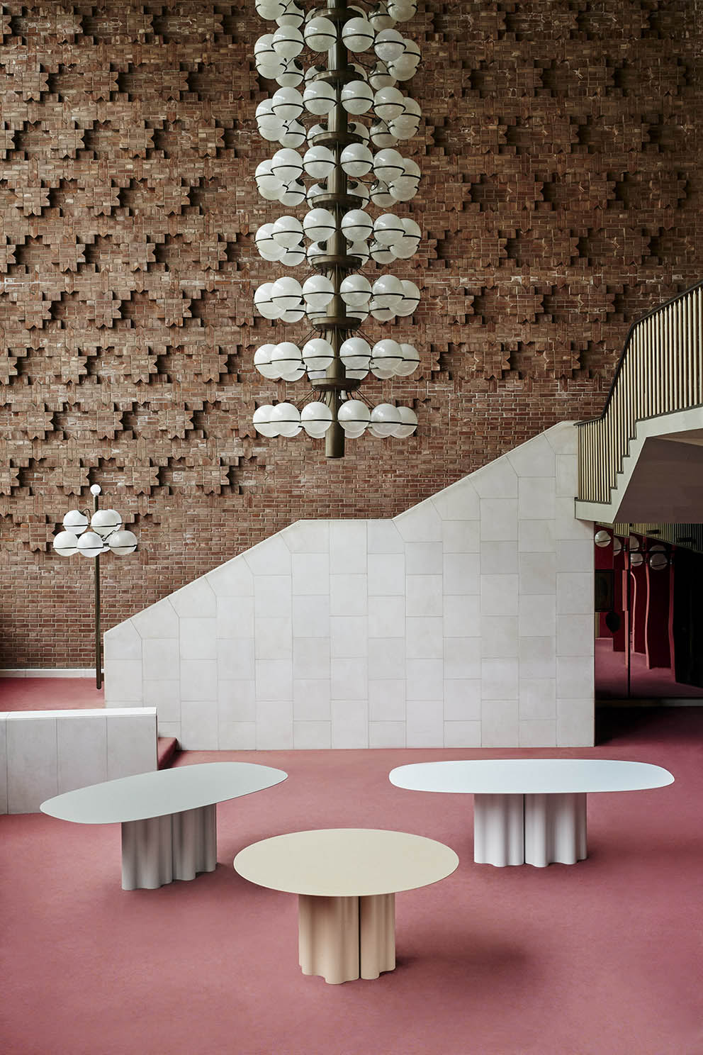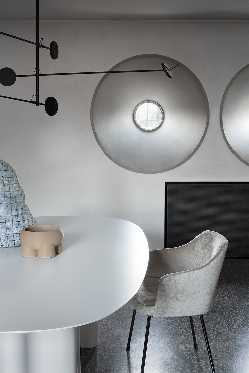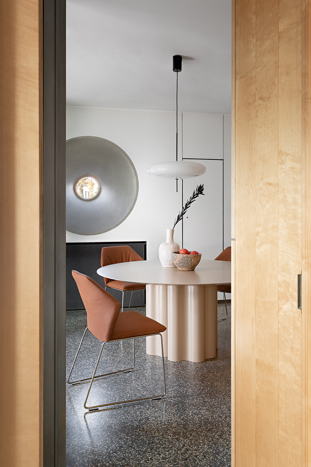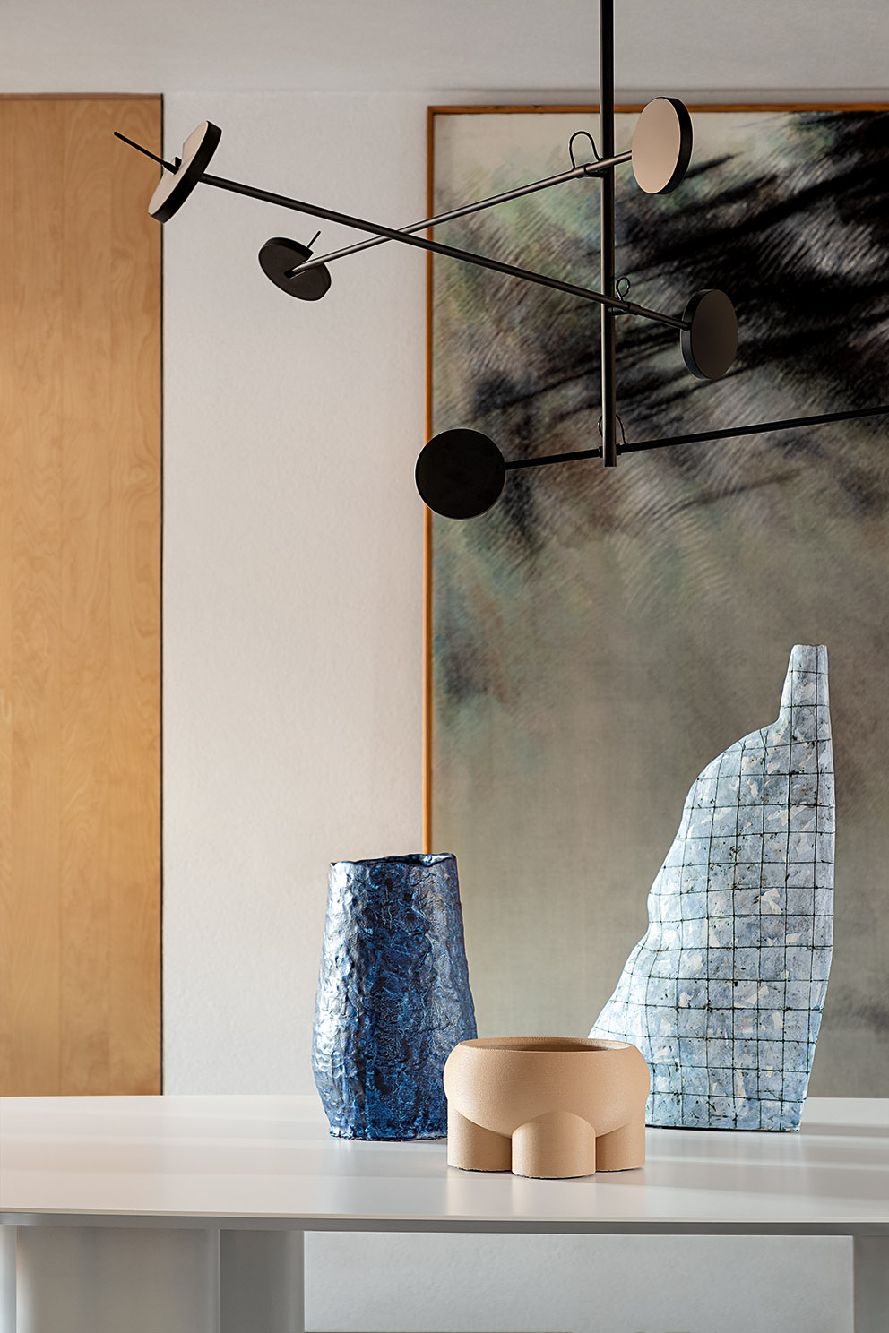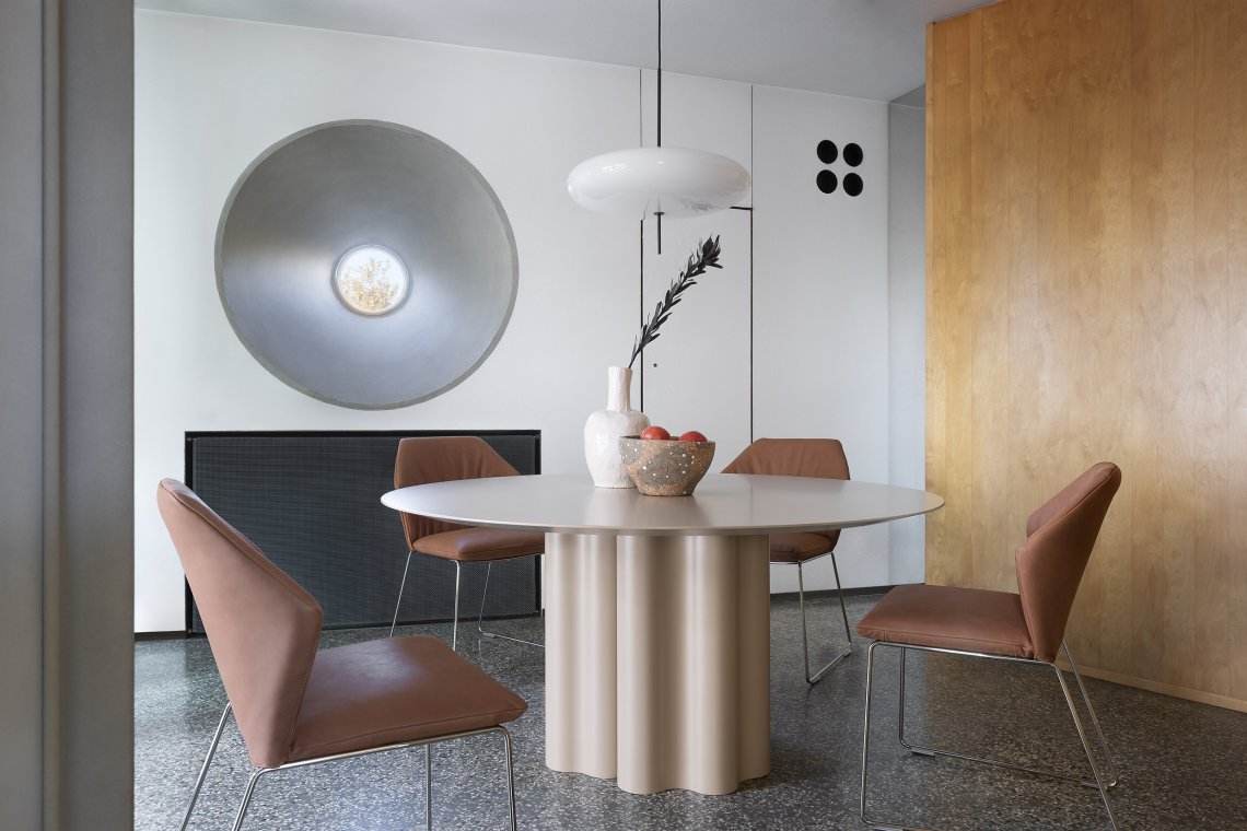 The softness of the fabric, reinterpreted in the base of the table, alludes to the very essence of the company, the table bases can be united or separated and they accentuate the compositional freedom of a sculptural furniture piece that becomes the silent protagonist of the environment. The table top, clean and essential, is available in different shapes and sizes, round and oval, to accompany different stories of conviviality.