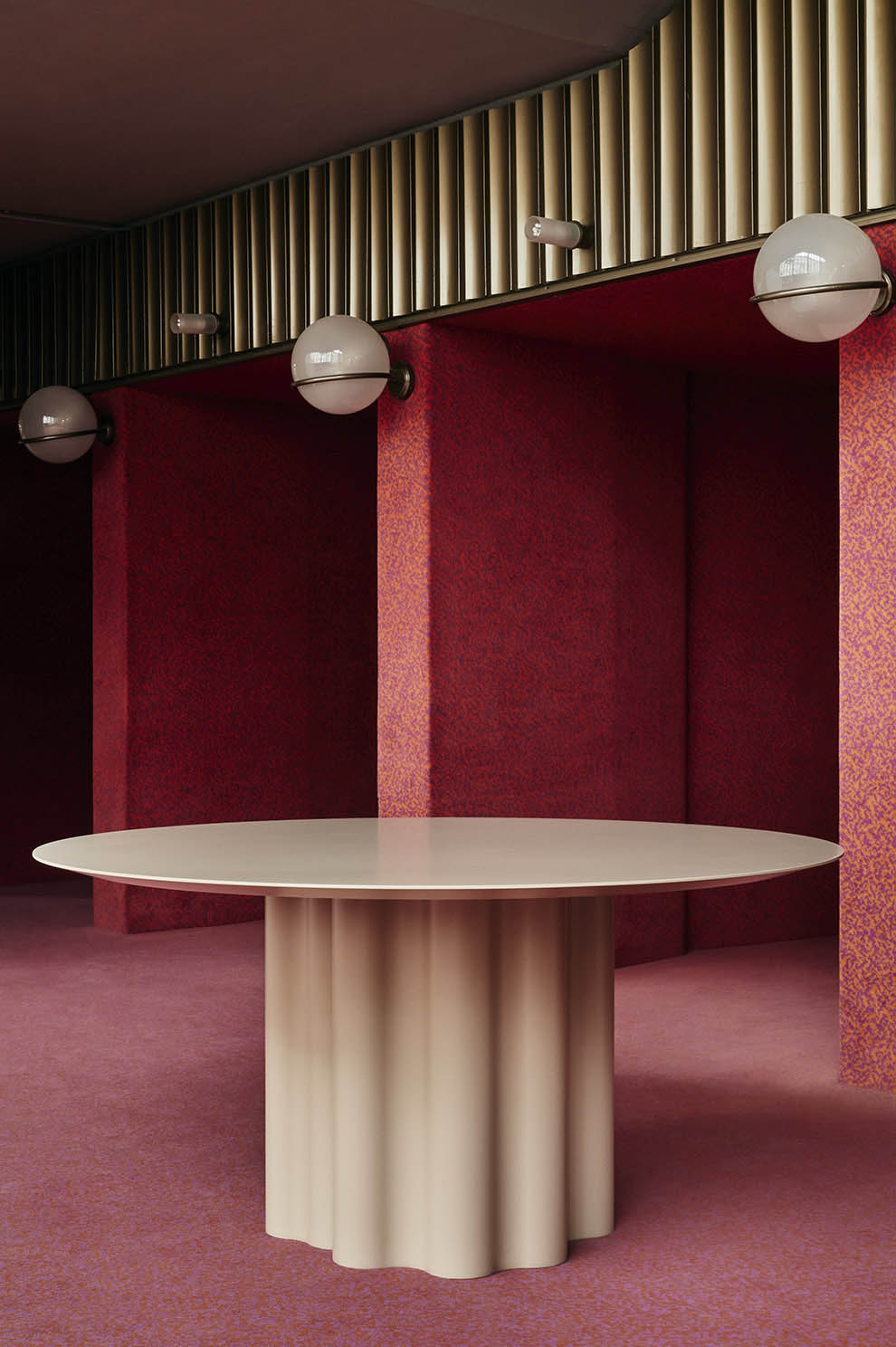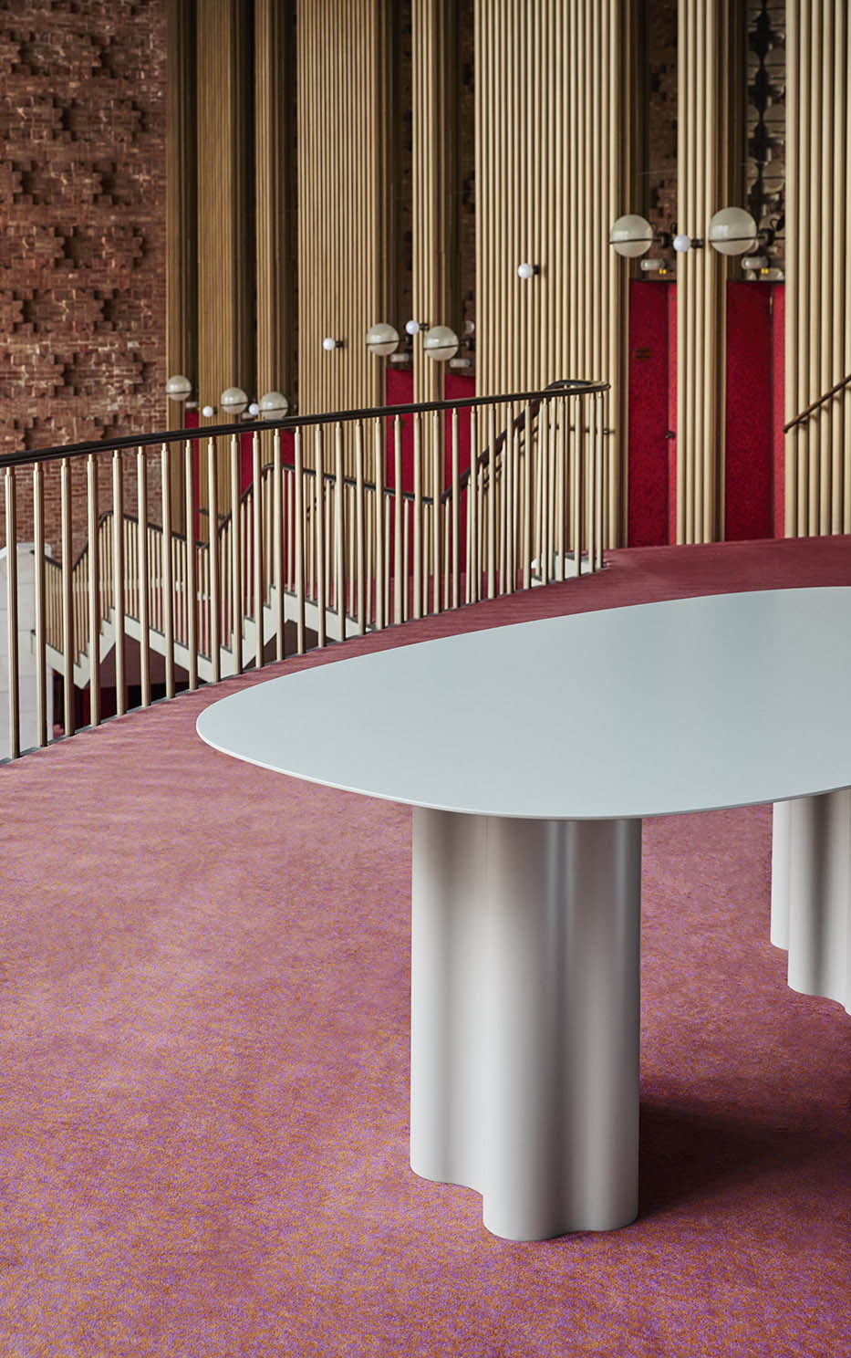 Teatro Magico, the first table by Saba, is a scenic backdrop for the domestic and contract environment.