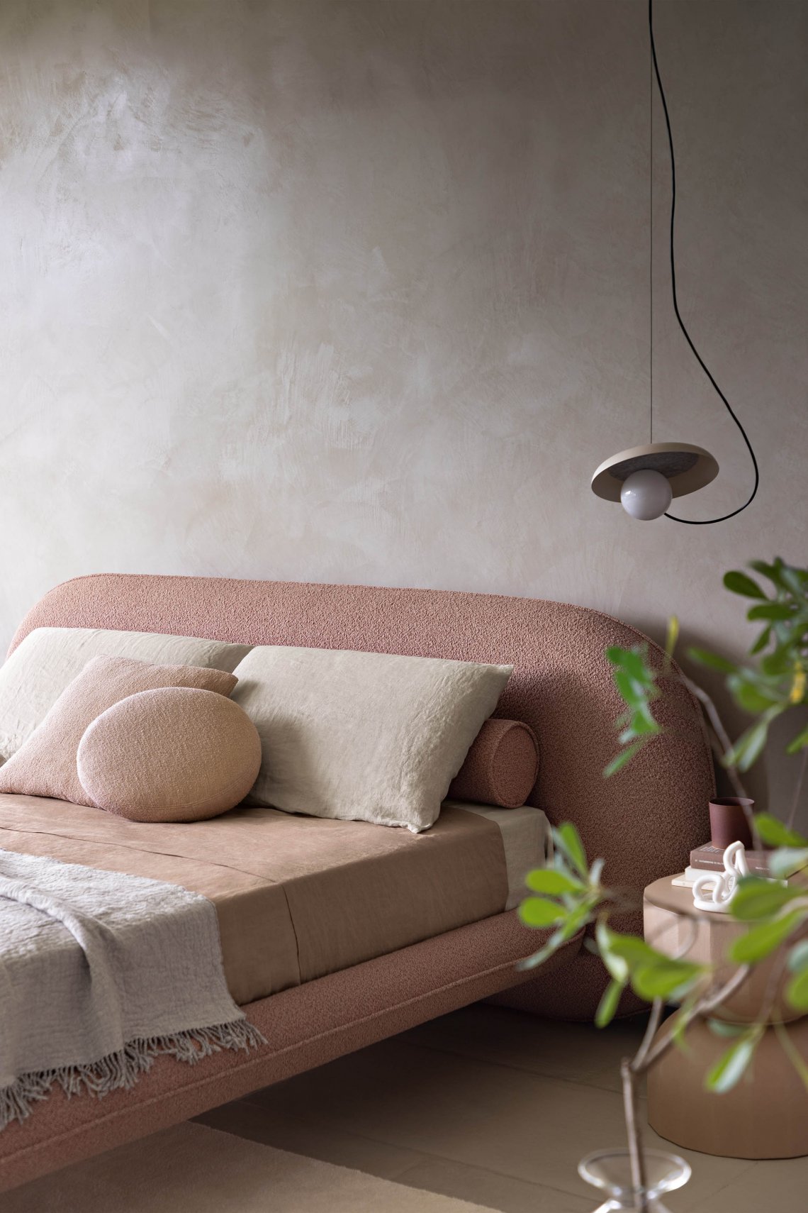 We love the new bed designed by Alain Gilles precisely for its apparent imperfection that combines, with a harmonious style, the sculptural quality of the feet with the clear-cut contrast created by the soft and textured headboard. Fully removable covers.