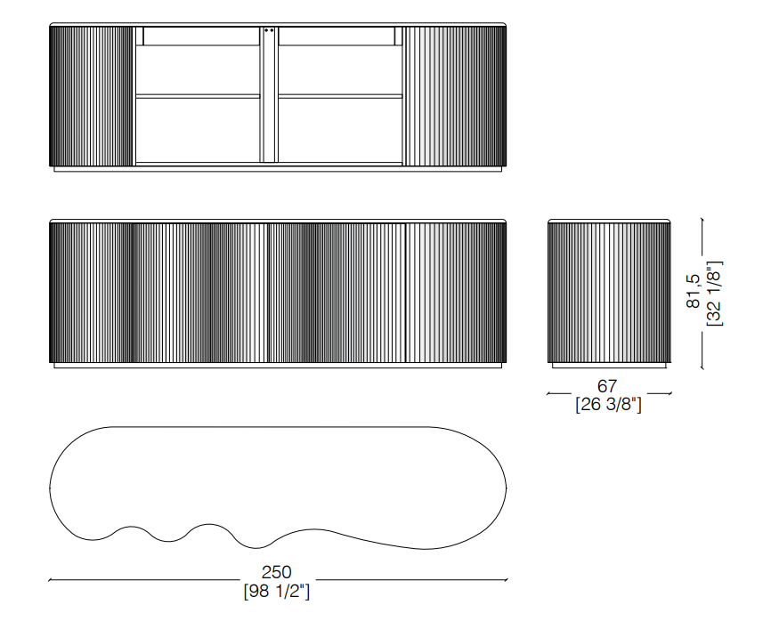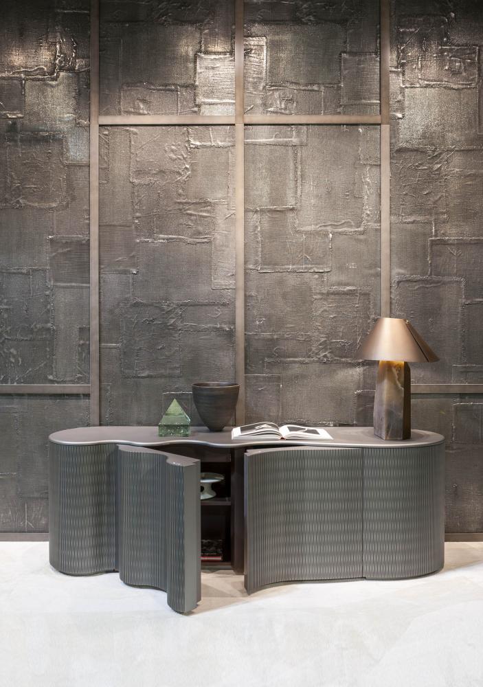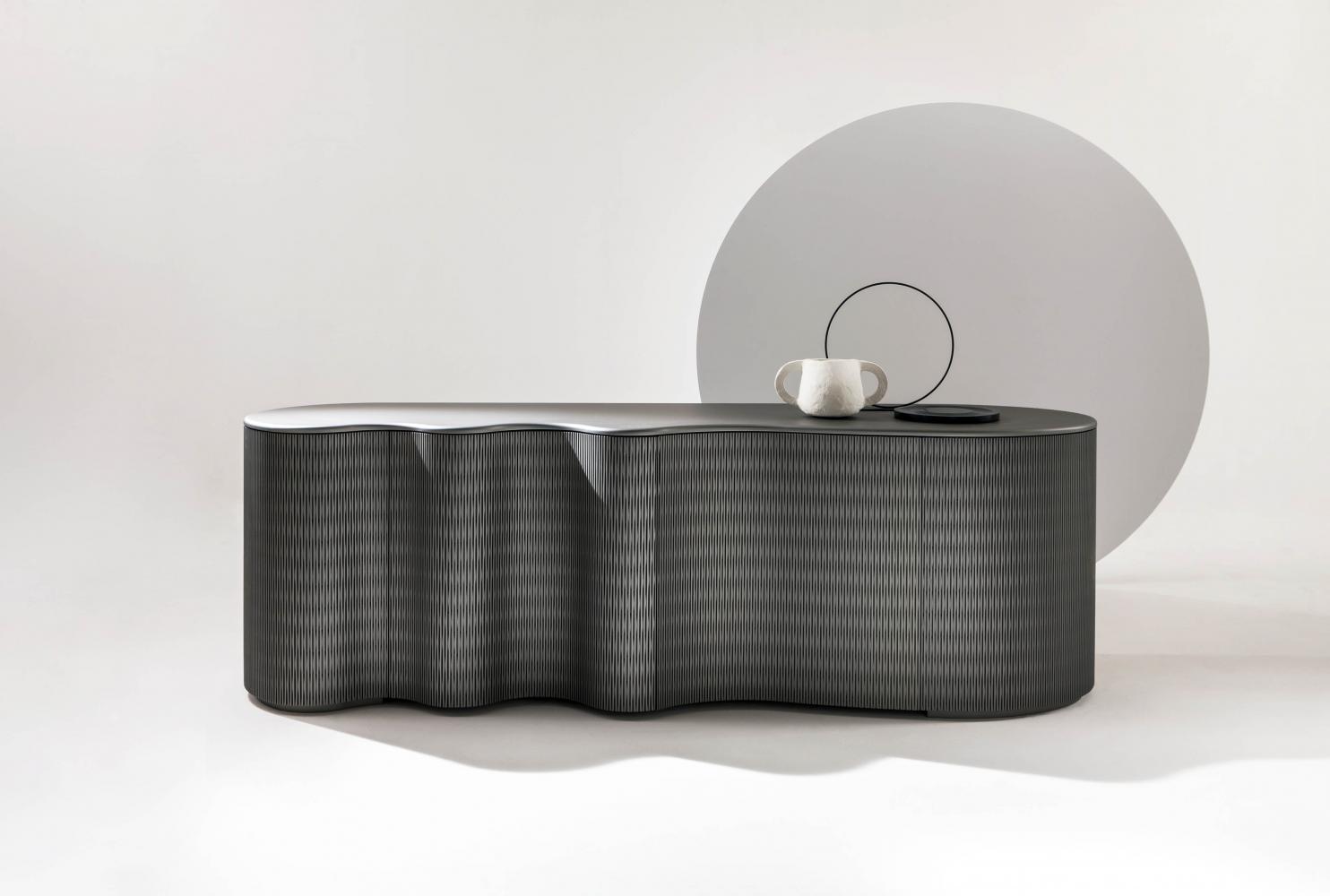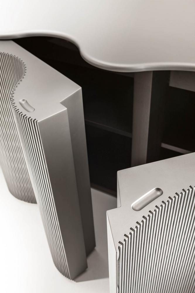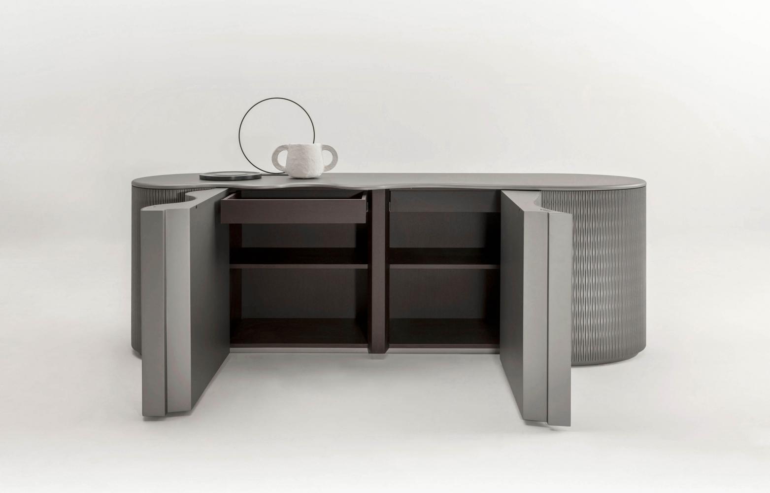 Part of the Infinity collection, this sideboard re-proposes the design of the console, reinterpreting its use and introducing the two hinged and curved doors.