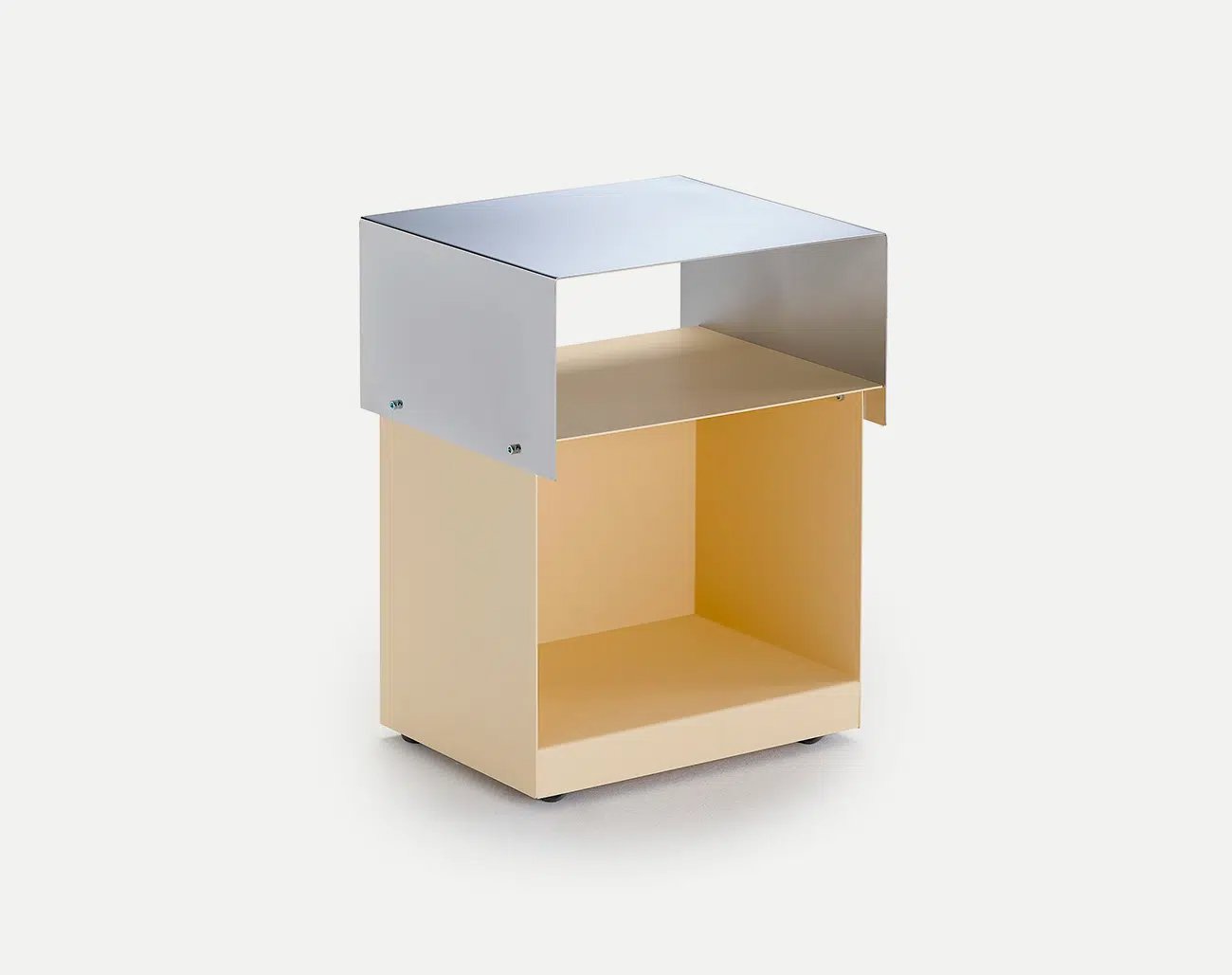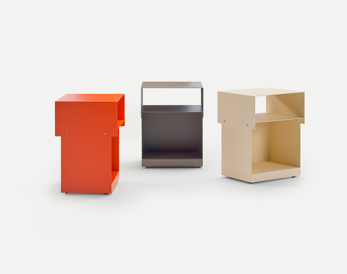 Apart from the castors, metal is the only raw material used in its construction. Laser cutting and folding make reduce waste to the minimum. Its textured finish adds character.
