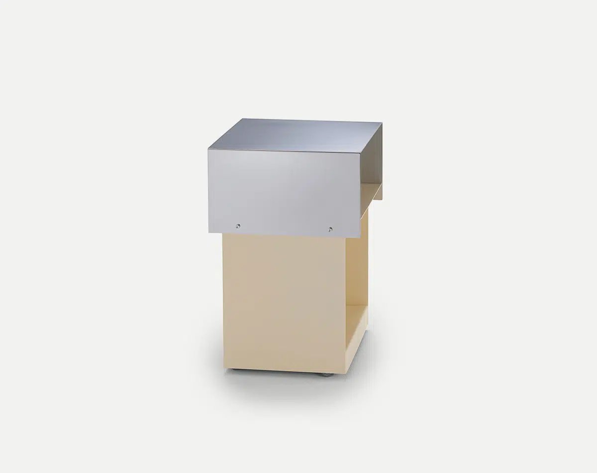 Its open, minimalist structure, shunning draws, enables quick access, while its castors enable it to keep up with our paced lifestyle, at home or in the office.