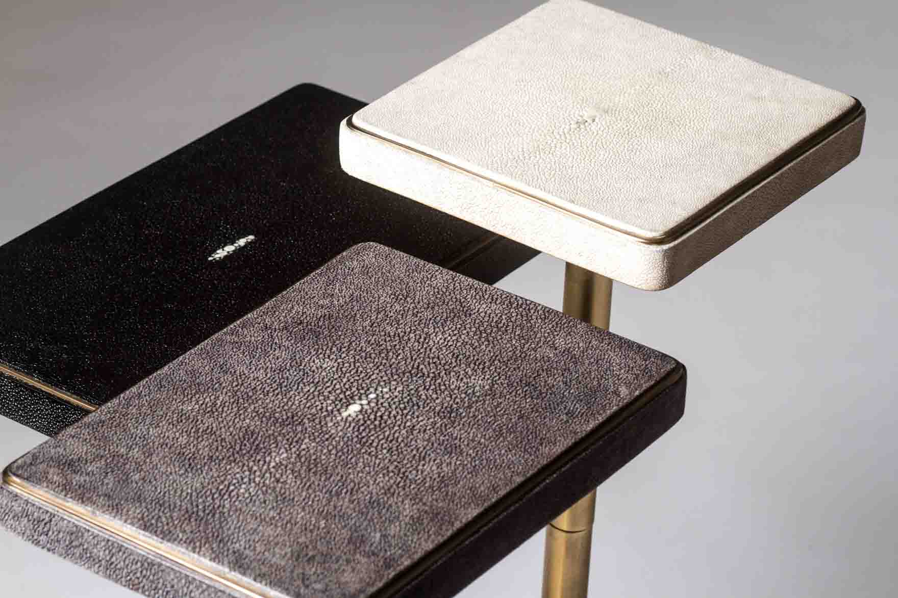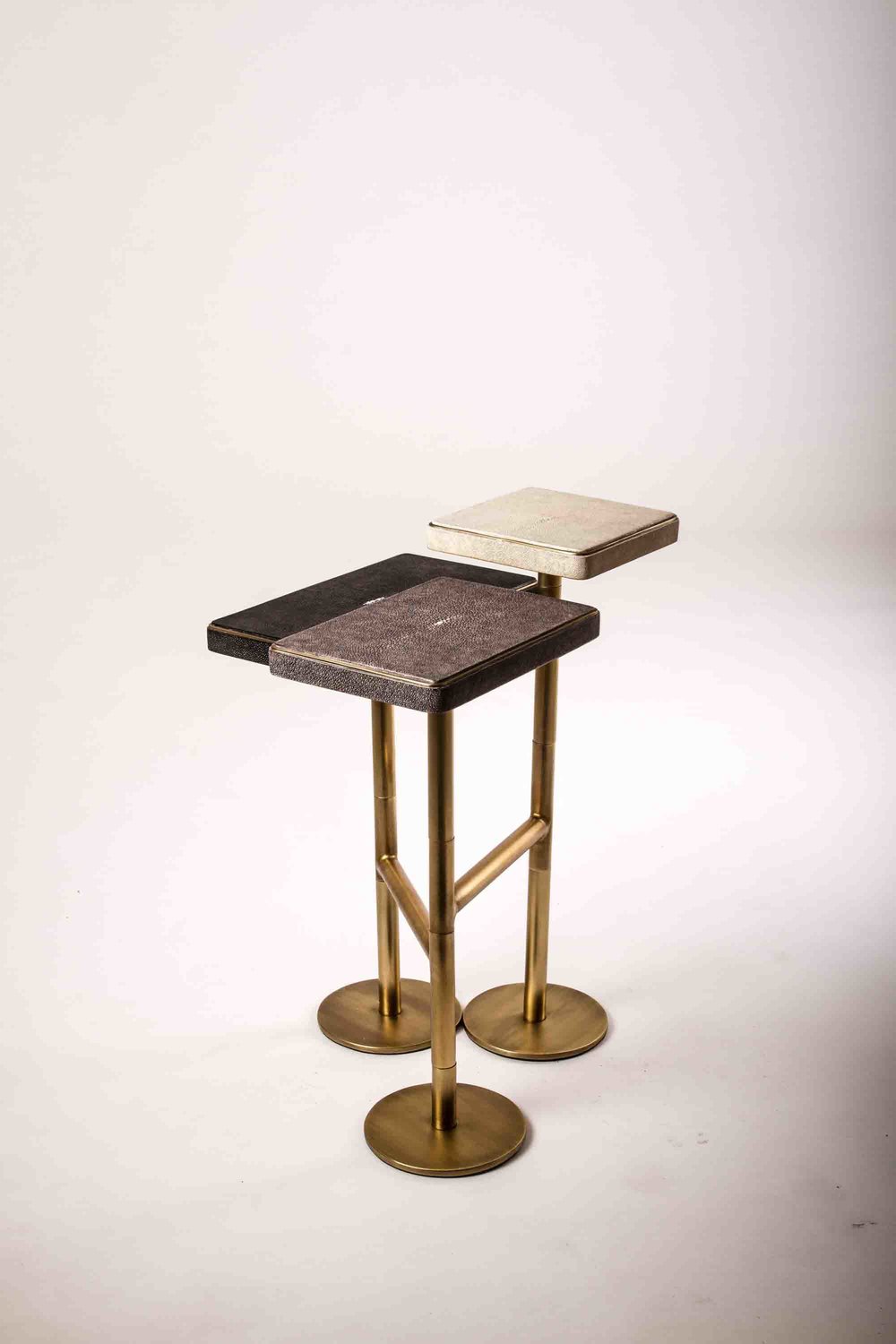 The 3-Top Rotating Side Table is completely mobile, allowing one to adjust the piece to their preference from elongated to clustered.