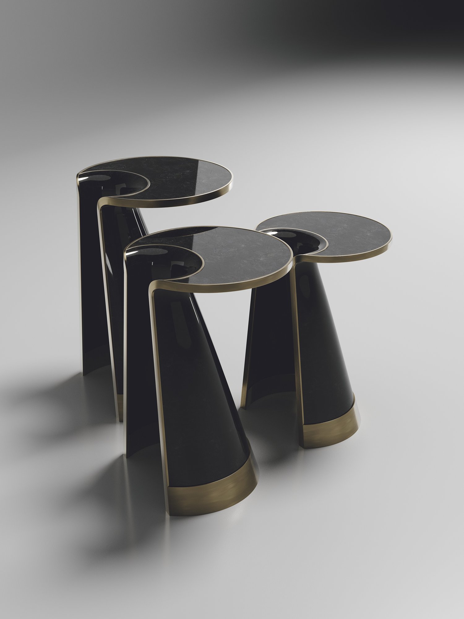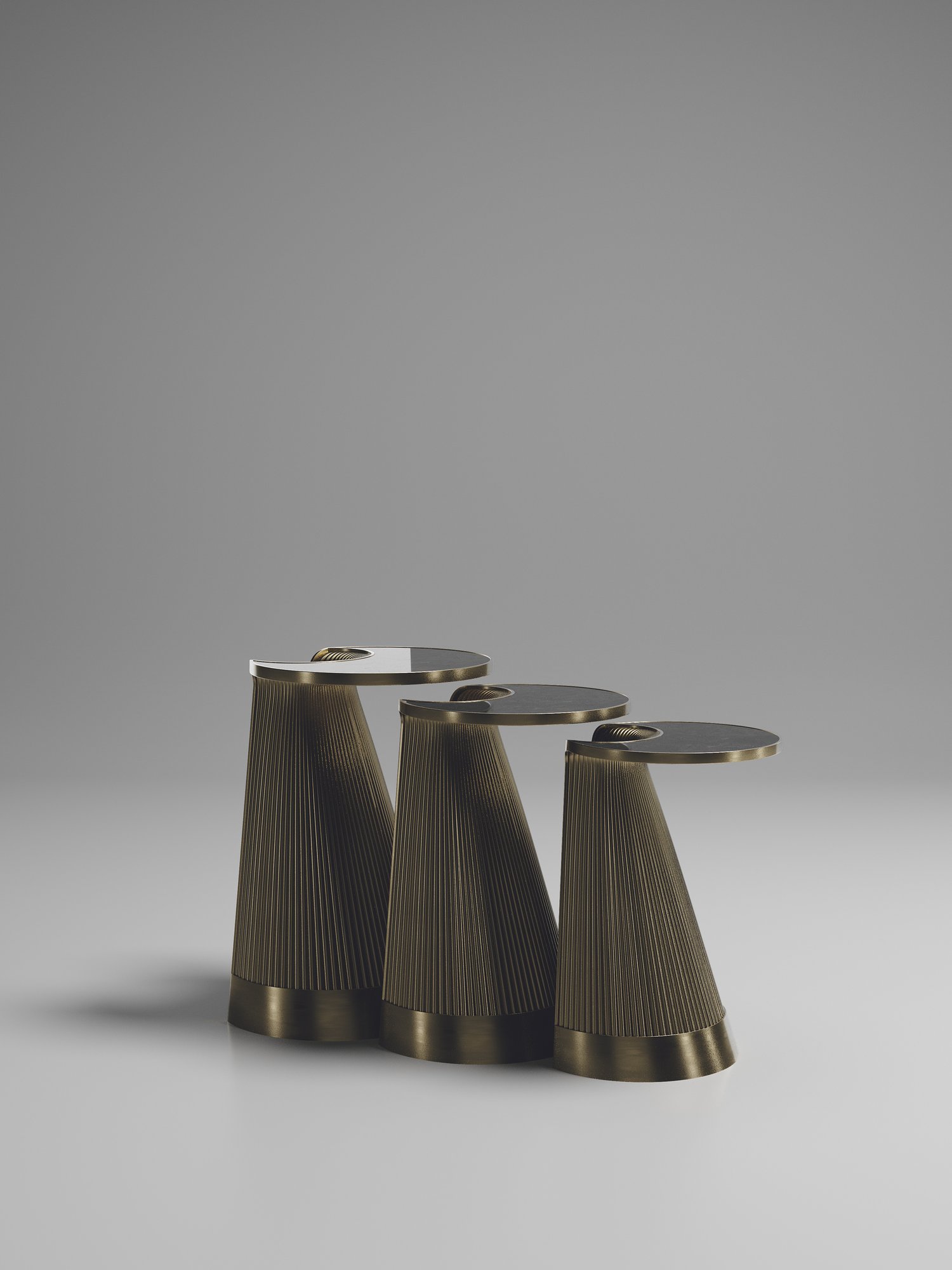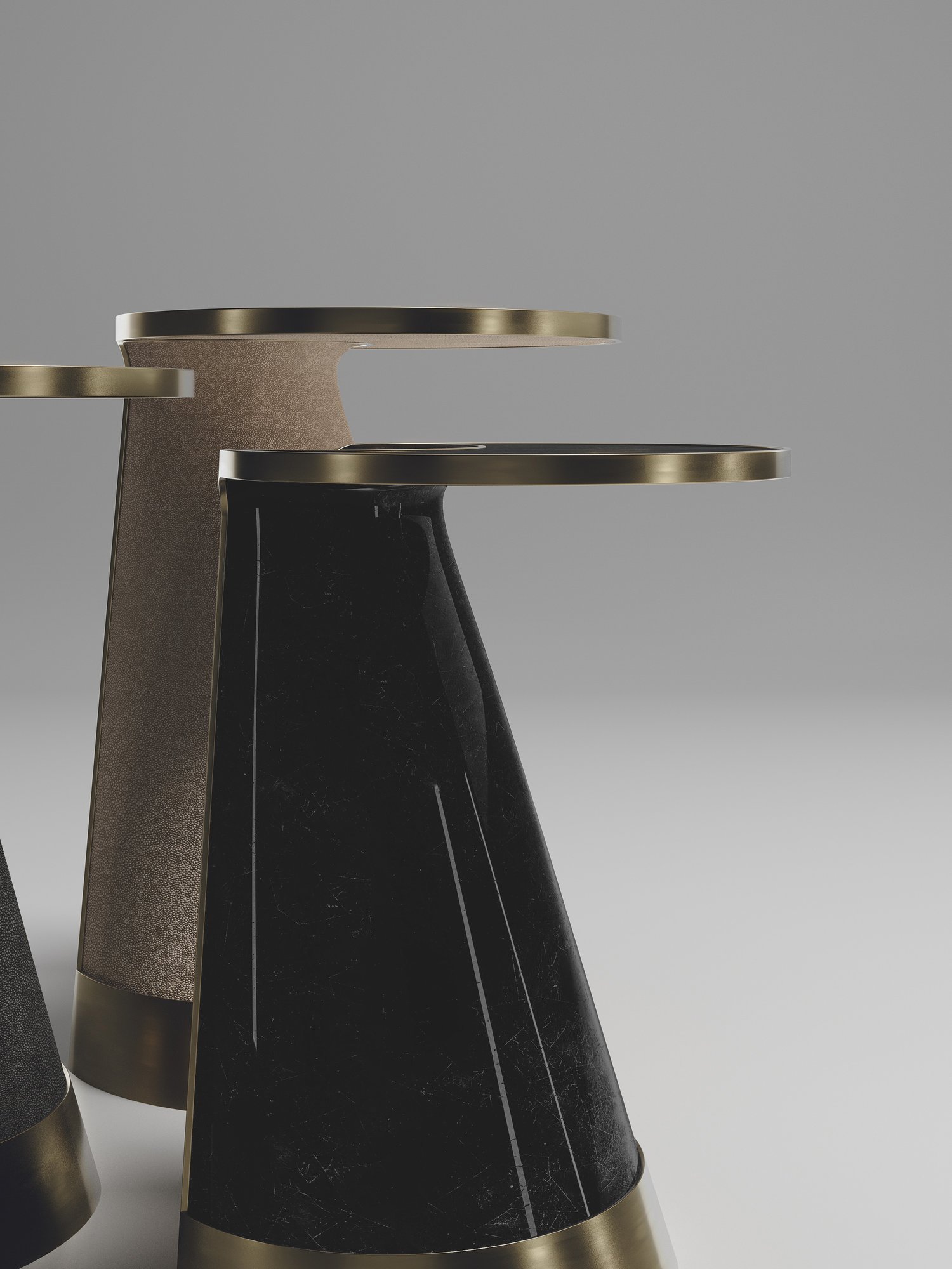 The Nymphea set of 3 nesting side tables by R & Y Augousti explore the brand's iconic DNA of bringing old world artisanal craft into a contemporary and utterly luxury feel. These pieces are done in different finish variations including shagreen, pen shell with bronze-patina brass accents. This listing is for the set of 3 nesting tables, the pieces are available to purchase individually on request. Custom sizing/finishing on request.