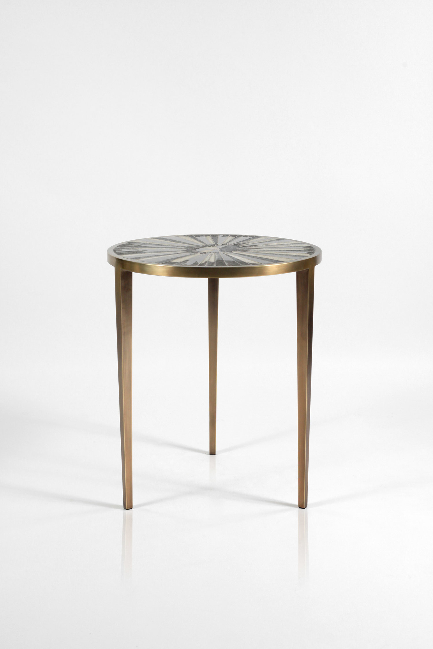 Once again, R&Y Augousti achieves the refined union of the finest of craftsmanship in this Side table inspired from the Art Deco with this top in Marquetery, with a design stylishly.