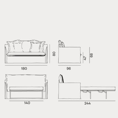La famiglia di divani-letto Ghost unisce funzionalità, comfort ed estetica. Disponibili nella versione poltrona-letto e divano-letto in più dimensioni, i divani trasformabili Ghost si sviluppano attorno ad una leggera scocca dai volumi essenziali. La caratteristica principale dei divano-letto Ghost è il rivestimento sfoderabile, una housse oversize il cui profilo è sottolineato dalle cuciture a vista, che permette ai prodotti di svestirsi e rivestirsi in un baleno. Si tratta di un progetto tessile che cambia facilmente volto, permettendo di passare da un look elegante ad uno informale con facilità e velocità.