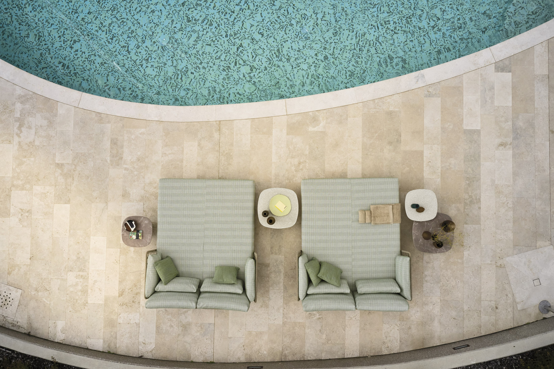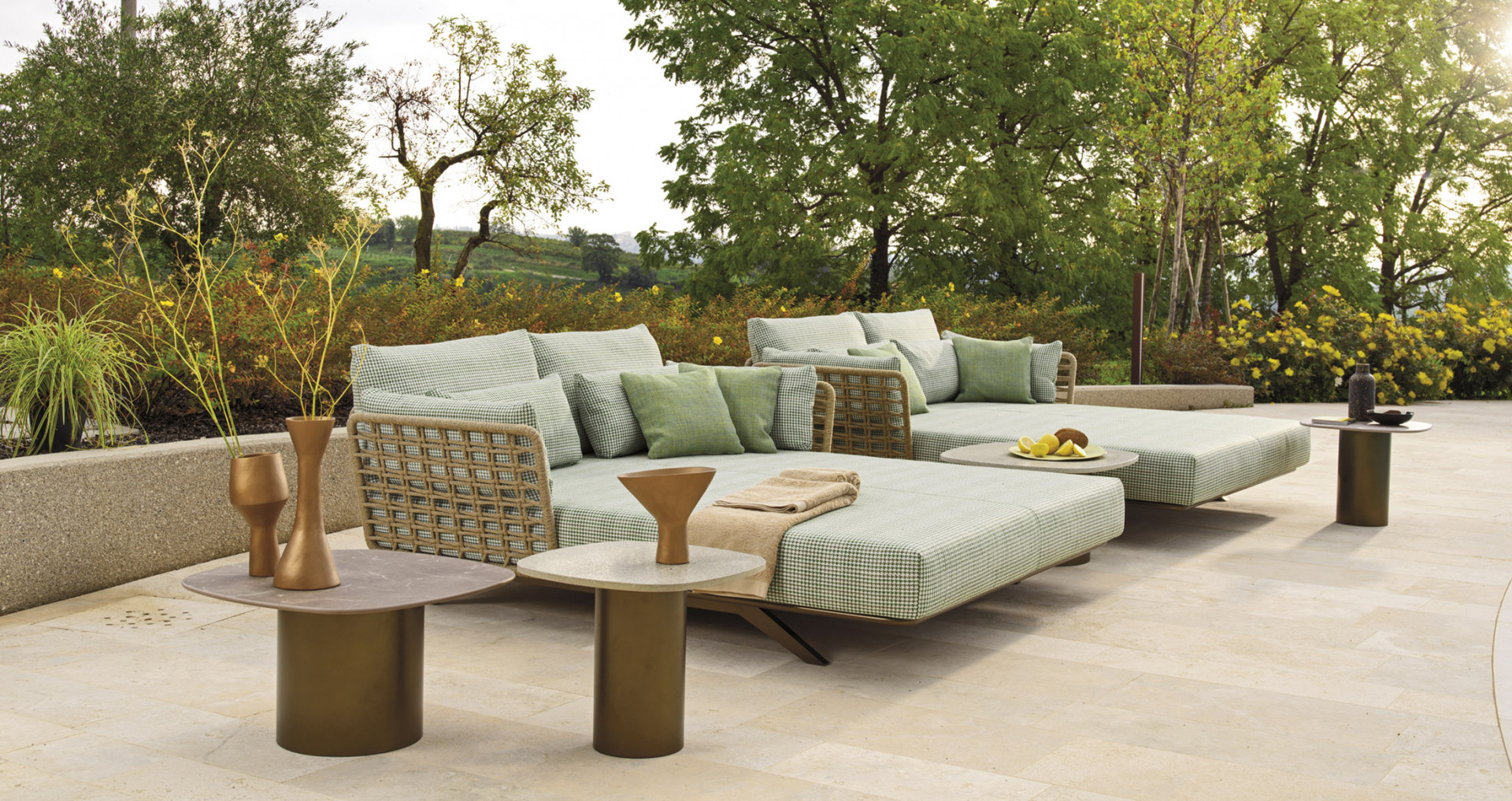 Daybed in acciaio inox Aisi 304 ed alluminio, verniciato a polveri ed intrecciato in Oval Trendyrope. Linee che valorizzano l'iconico stile italiano, dove le lavorazioni in corda donano un'estetica materica ed artigianale alla morbidezza avvolgente delle sedute, per concepire uno spazio ideale, dedicato al relax e alla socializzazione. Progettato sia per l'arredamento residenziale che contract, outdoor e indoor.