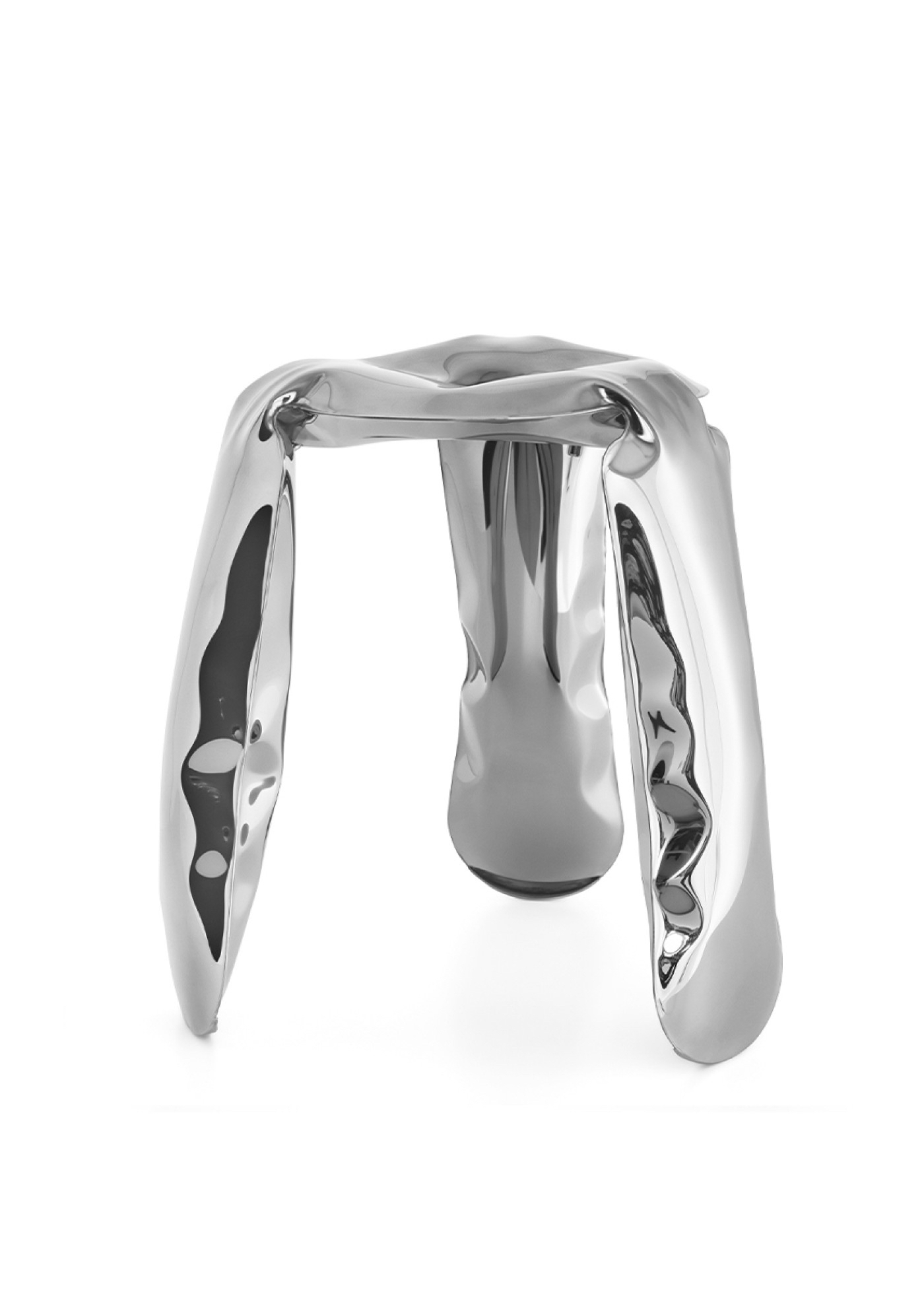 The PLOPP stool is an original, iconic object made in FiDU. It is a flagship of Zieta Studio and a symbol of Oskar Zi?ta’s research into the properties and possibilities of metal. The “Polish Air-Pumped Folk Object” proves how the artistic aspects of the design can be summarized in highly advanced engineering forms. Winner of the Red Dot Design Award 2008, the German Design Council Award 2008, and the Forum AID Award 2009. PLOPP is a manifesto of the FiDU technology and the “controlled loss of control” process. Two ultra-thin steel sheets are welded together around their edges and inflated under high pressure, deforming a 2.5D flat form into a 3D object.