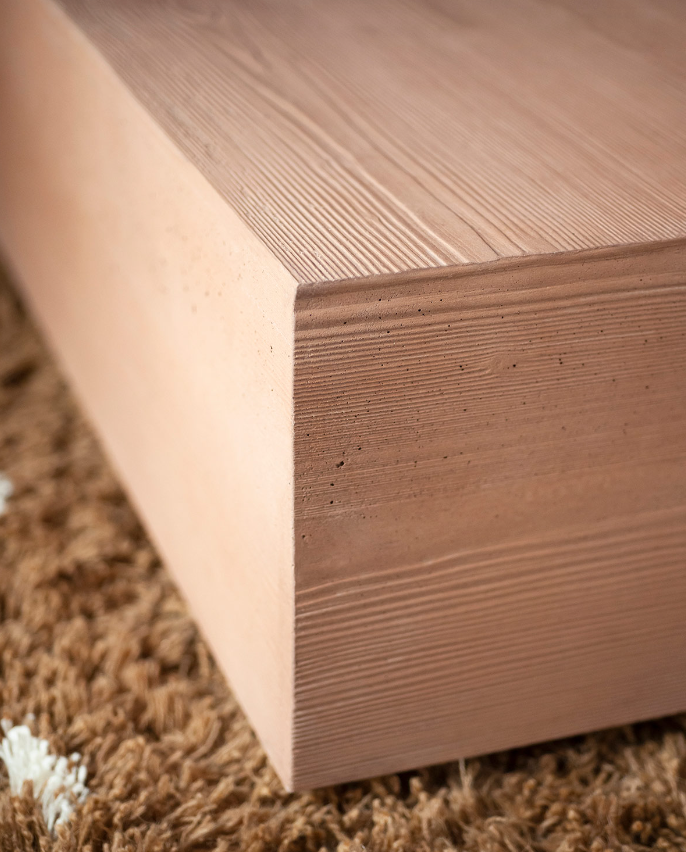 Two furnishing elements of pure material. Two architectural blocks in perfect scale. The materiality of the concrete becomes the protagonist and is expressed through irregular surfaces that recall the raw wood with which the formwork is made – the wooden formwork used in construction that holds within it the shape to be created by casting concrete. Designed by Roberto Sironi, Cassero is a material reworking in which the tactility of the wood grain becomes the distinctive and significant aesthetic element of the project: two low tables with essential and rigorous shapes that bring a powerful architectural sign to the living environment through variation of scale and careful chromatic research.