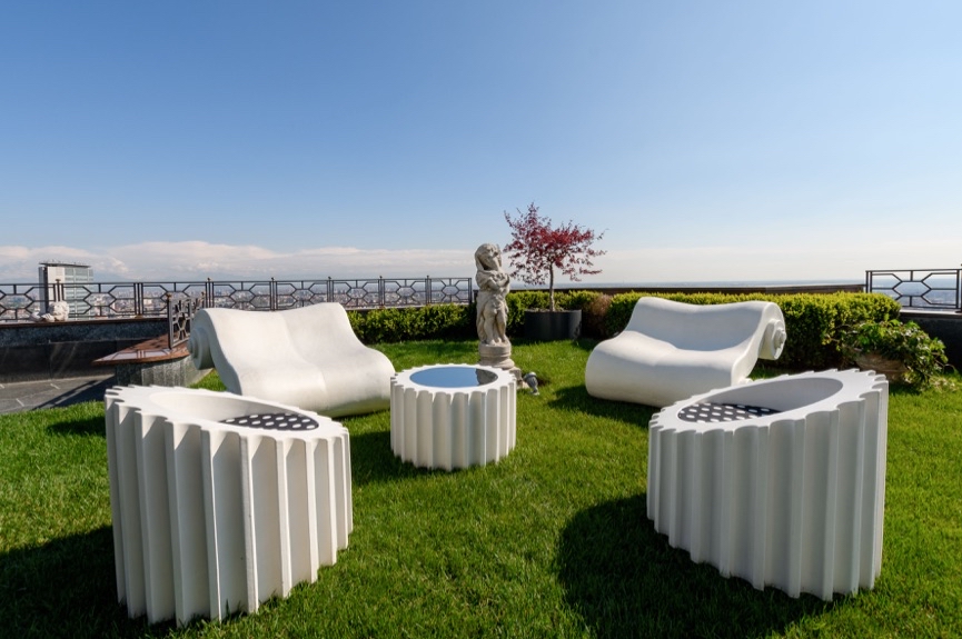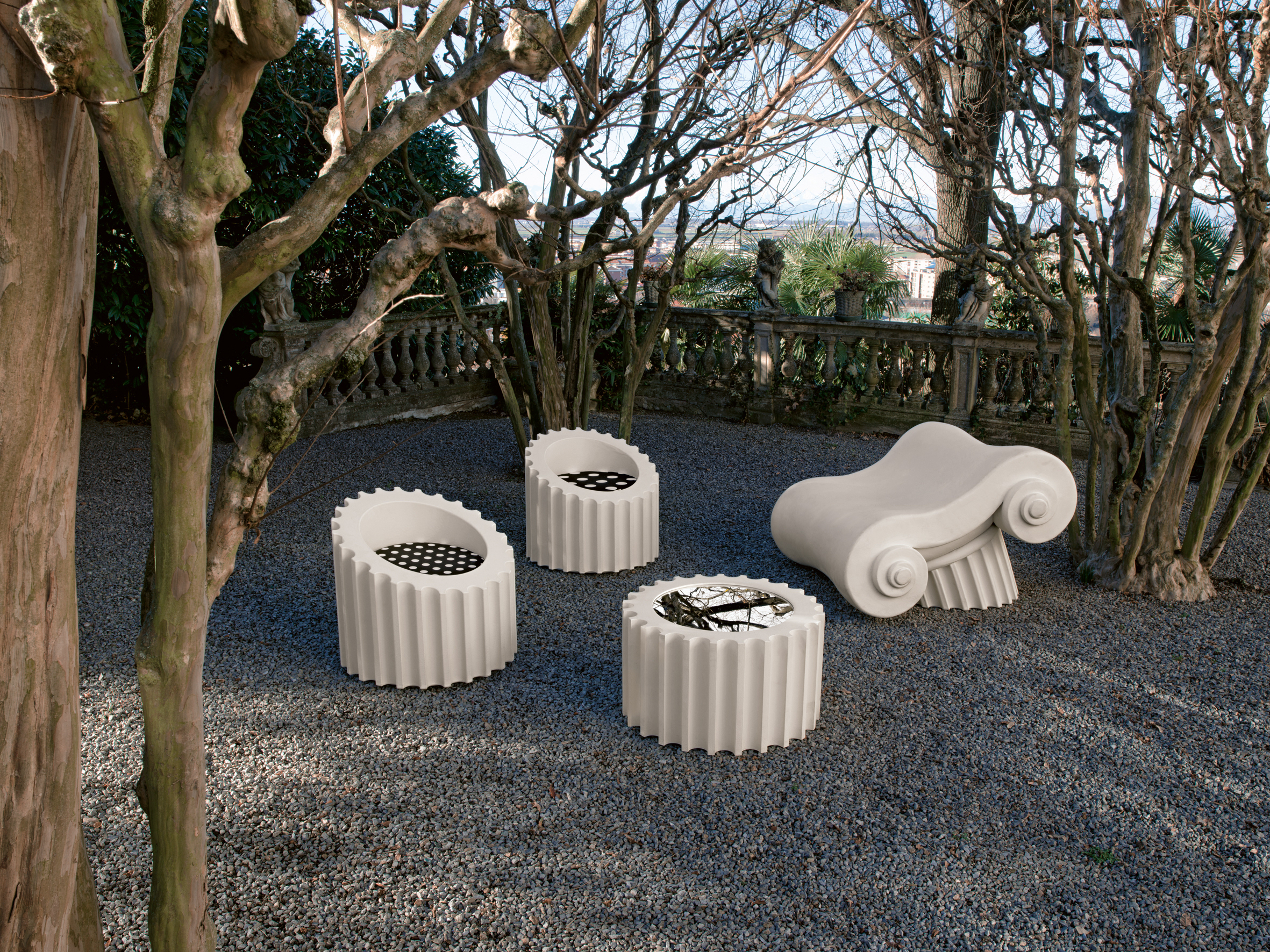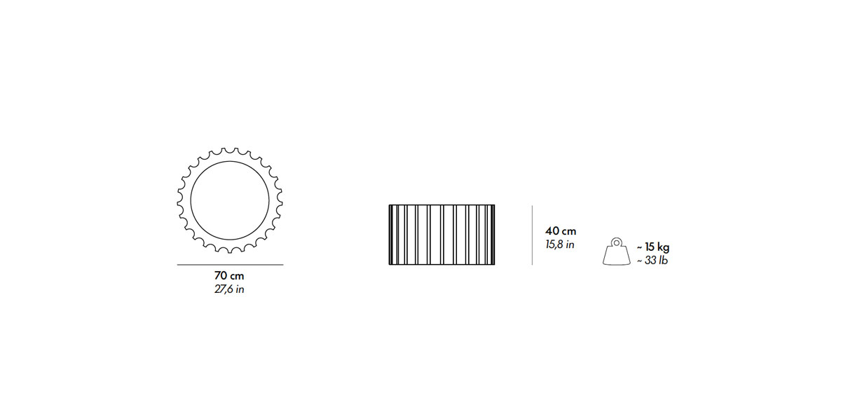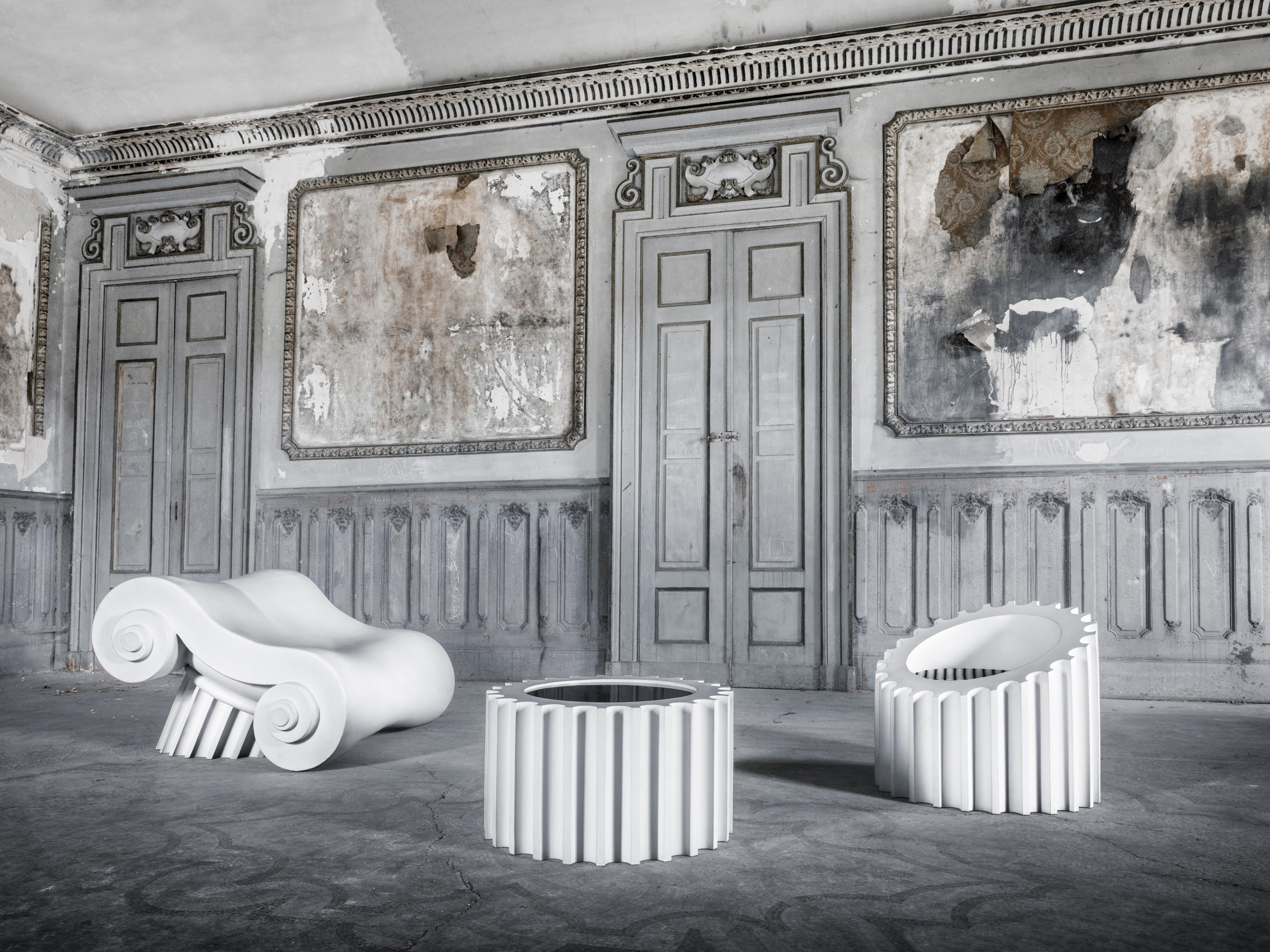 La seduta CAPITELLO, la poltroncina ATTICA e il tavolino ATTICATL, progettati da Studio 65, nascono dalla "decostruzione" di unatradizionale colonna grecd, dando vita a una serie unica cheemula le varie parti della stessa. Ciascun pezzo vieneartigianalmente realizzato in morbido poliuretano e finito conGuflac? Utra, consentendo un utilizzo sia per interni sia peresterni, conferendo l'aspetto del marmo dal quale trae ispirazione.La tensione tra aspettative e realt?? crea un senso di meraviglia,poiché la morbidezza degli arredi contrasta con la durezza dellapietra.Questa iconica serie pop è stata esposta in prestigiosimusei, tra cui il Louvre e il Metropolitan Museum di New York, erappresenta un interessante esempio di rinascita dalle rovine.