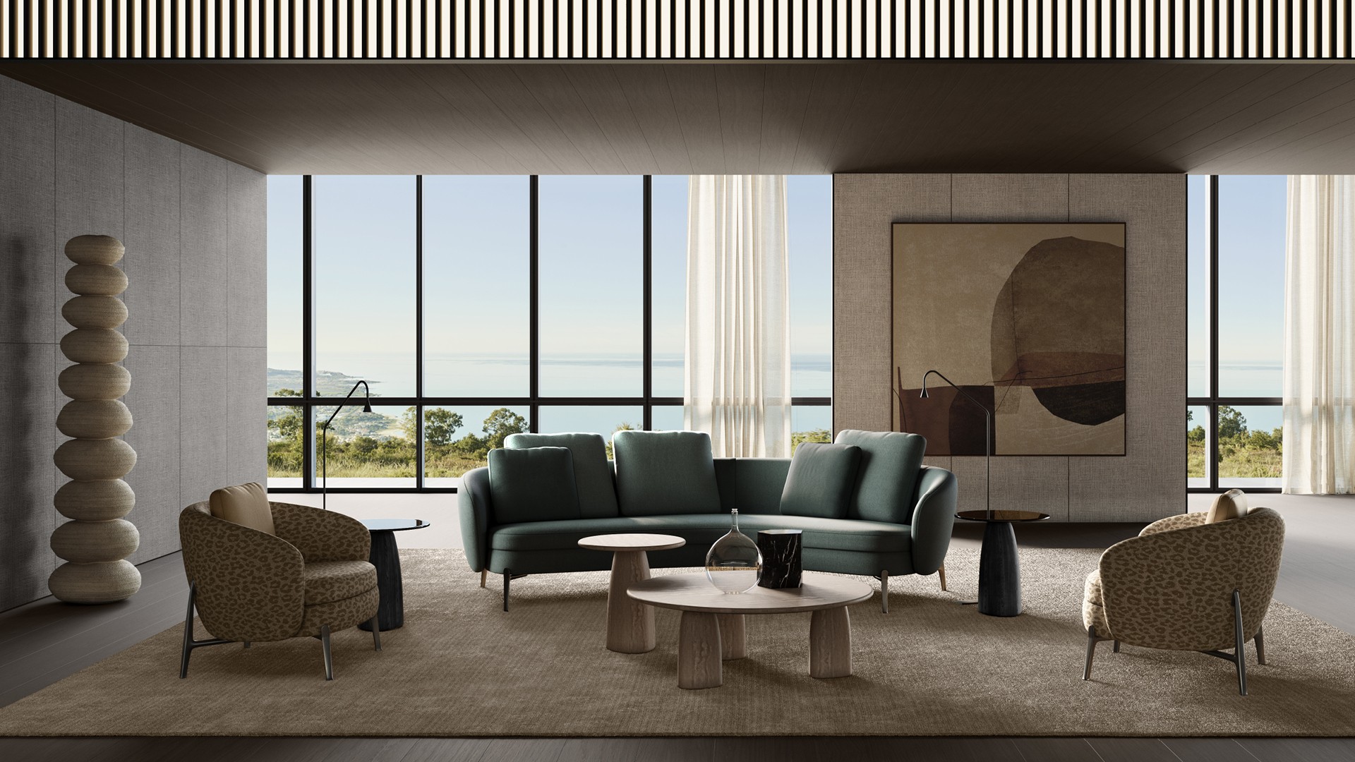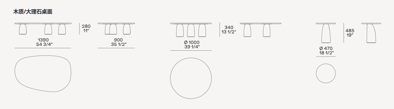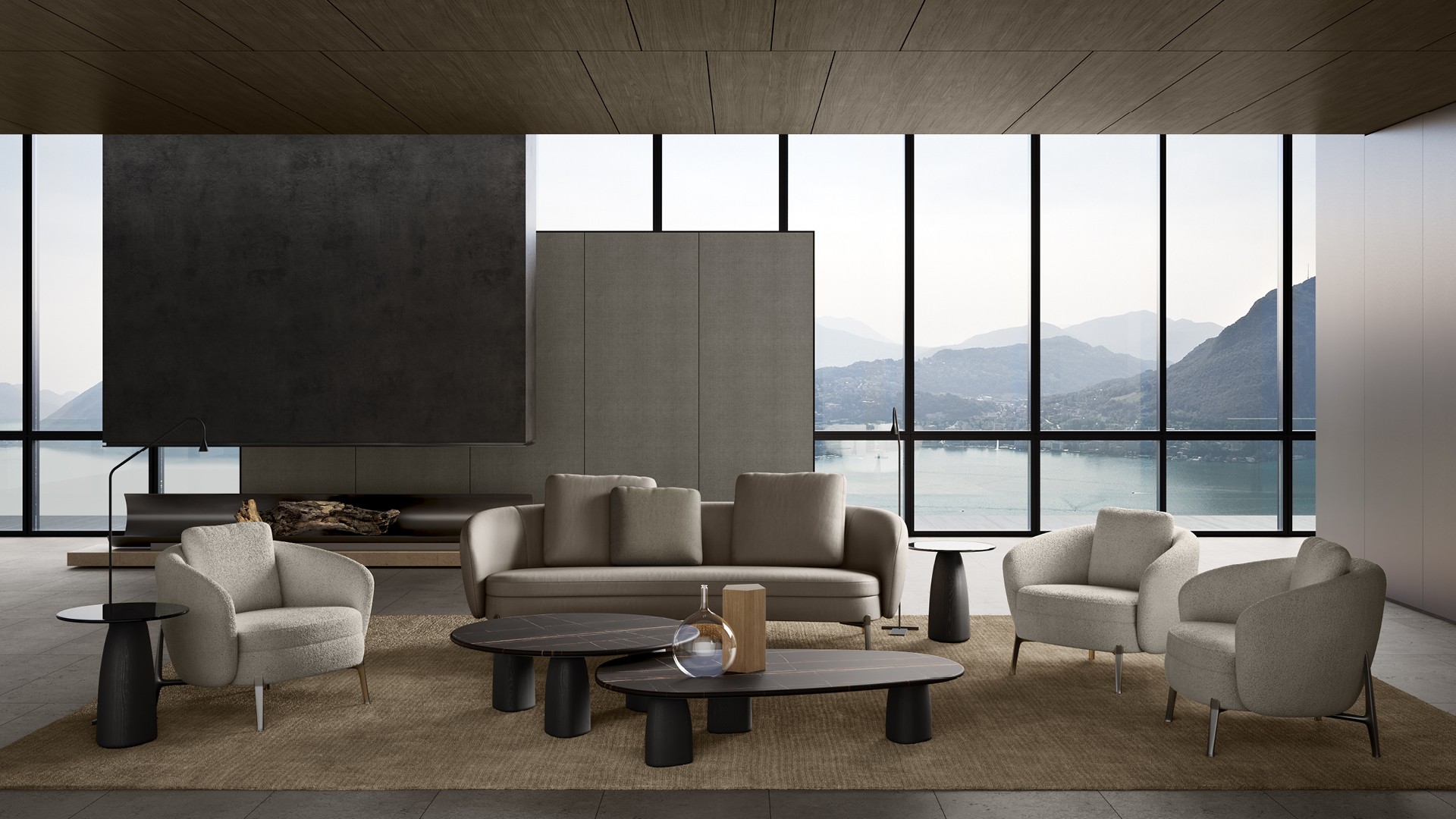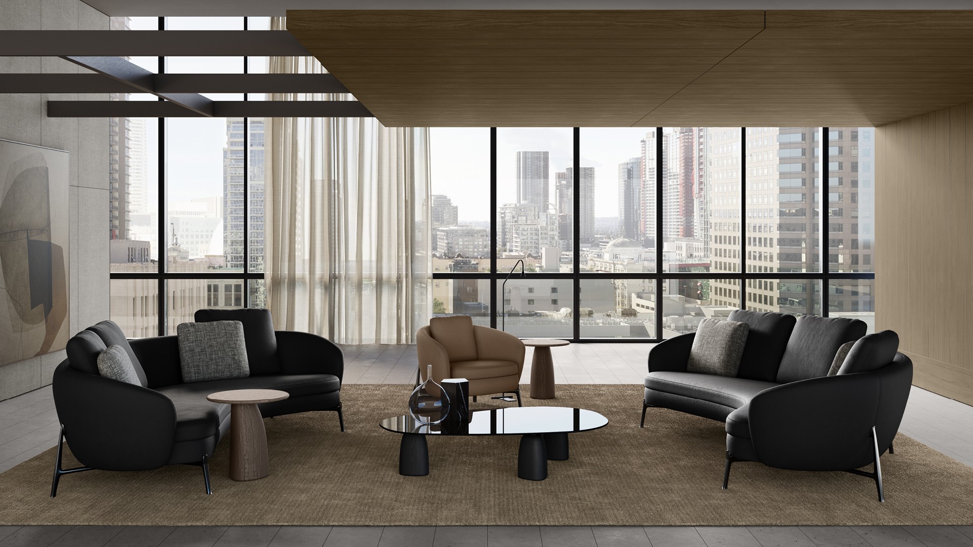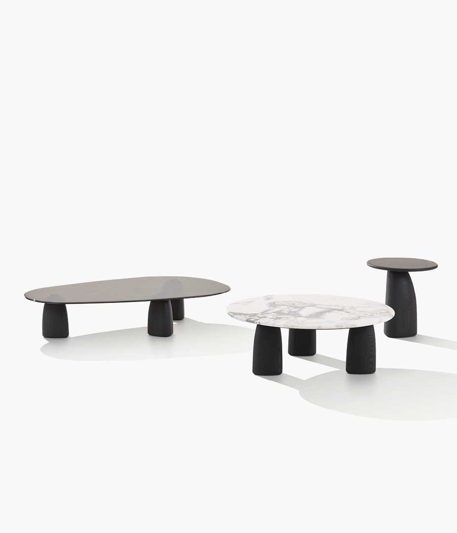 Strata最初作為戶外小茶桌而誕生,現重新詮釋為室內家具。其桌腿采用黑色榆木,臺面則采用大理石和玻璃材料,另外還有一款完全由石灰巖制成,呈現出雕塑般的美感。Strata有各種不同的尺寸和高度可選,臺面有圓形或自然形狀,展現了其獨特的魅力,可與該系列的所有沙發搭配使用。