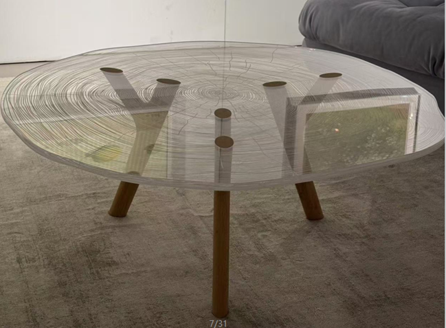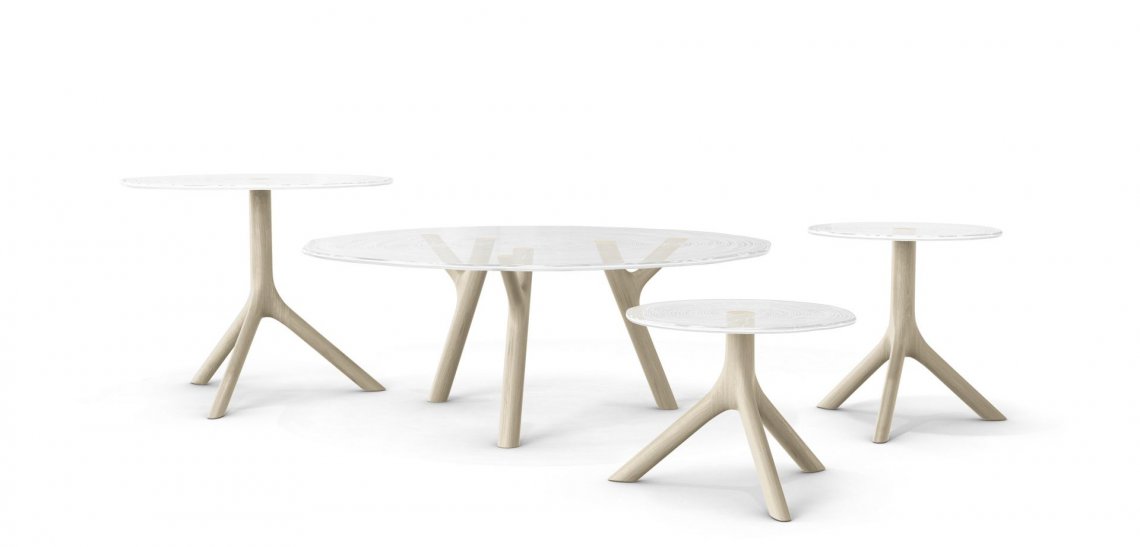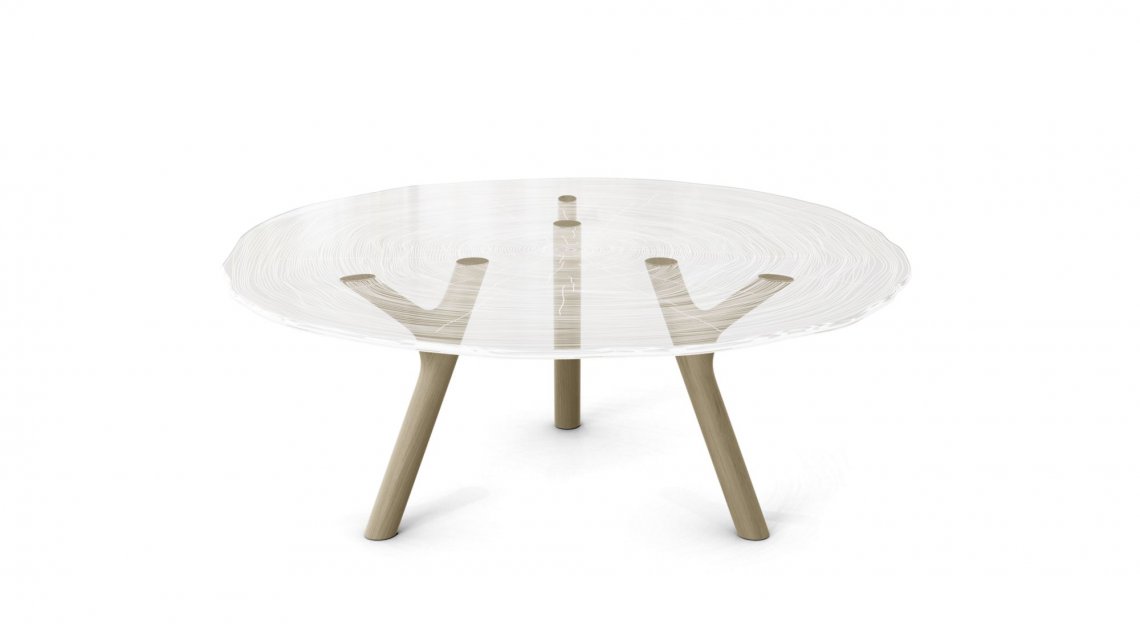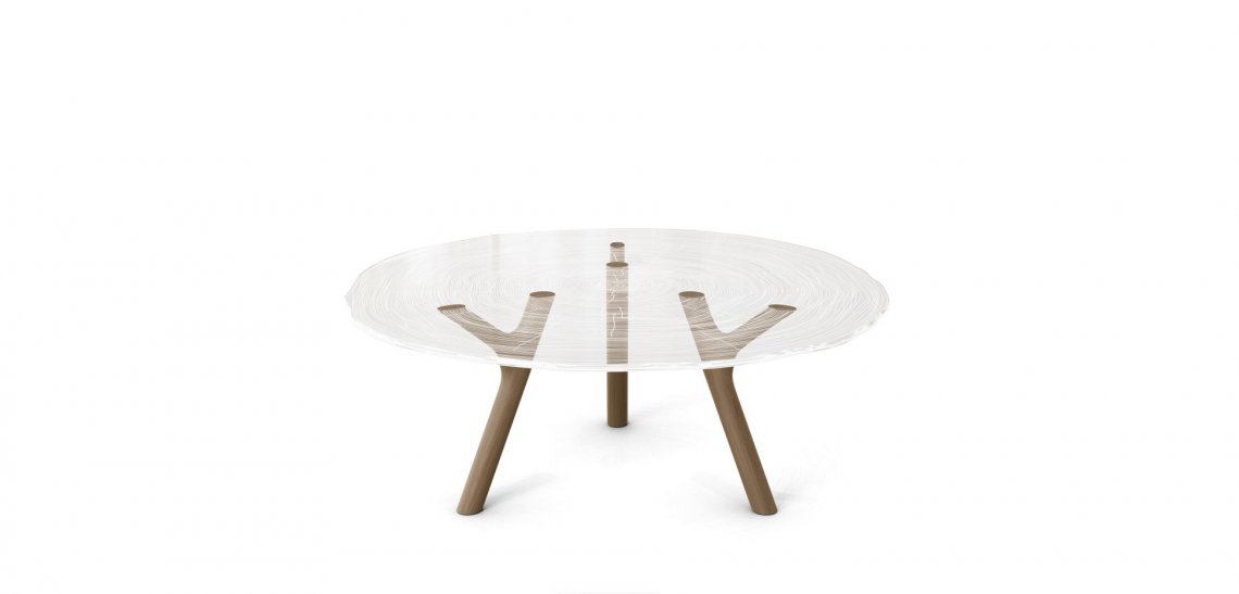 organiche della natura. La base in rovere massiccio è finita a mano ed il piano trasparente in Altuglass? è finemente inciso