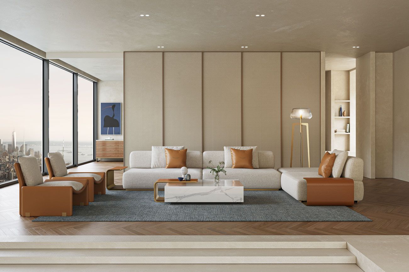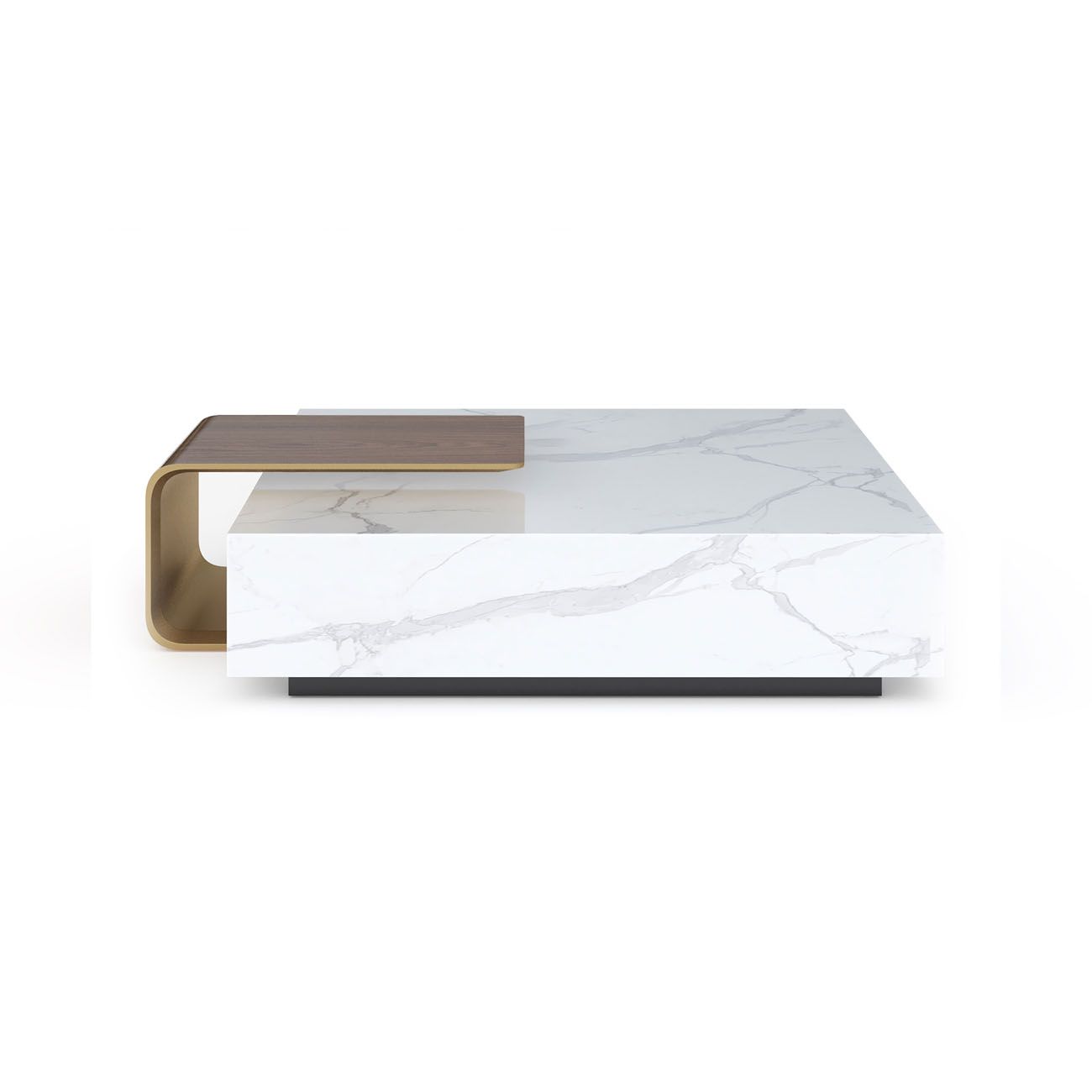 All in marble Verde delle Alpi. Side Table component: external part in leather art. Cuoio col. 6295, internal part lacquered col. Pale Gold.