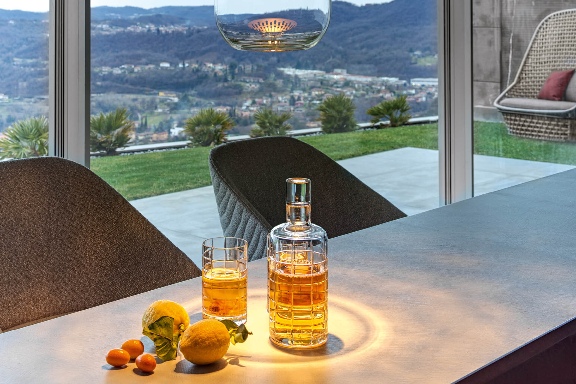 Glasses in transparent "Florentine" crystal with special hand engraving.