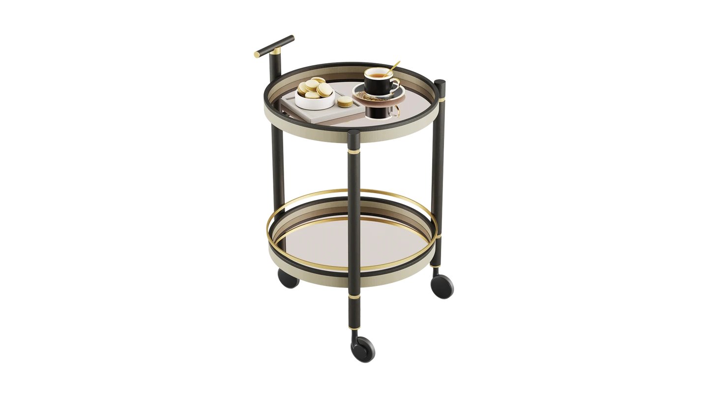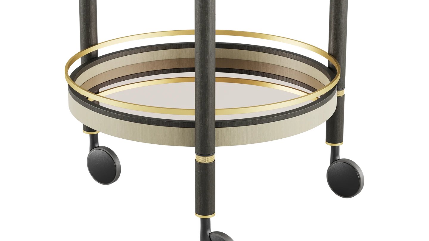 Touching on retro, our COMO Bar Cart combines bronze mirror and brushed brass. It features timeless details and enough space for your drinks, glasses and appetizers.
