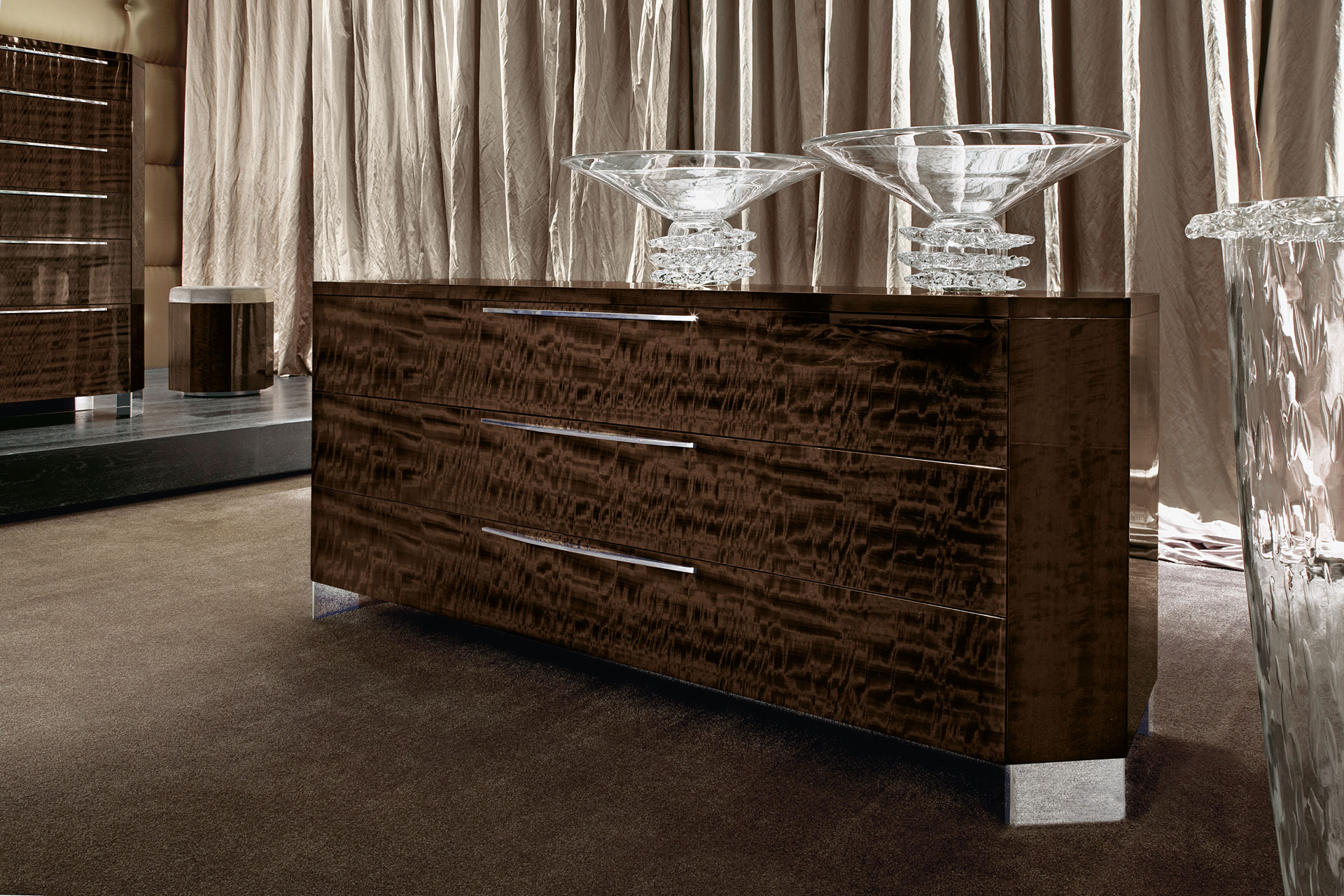 Dresser in european curly eucalyptus veneer in high gloss polyester.
