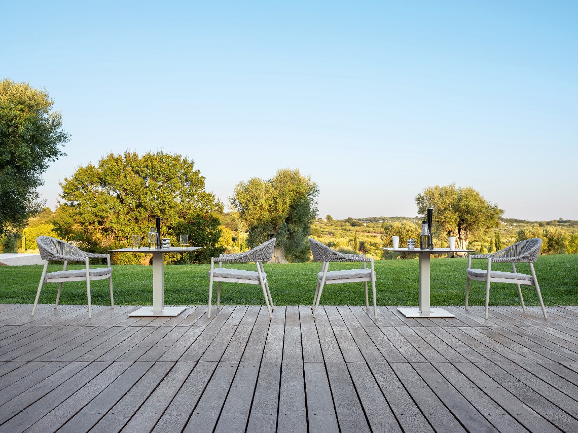 Clever lounge is perfect for enjoying an aperitif or an outdoor lunch. A spacious cushion in water-resistant acrylic fabric can be added to its spacious seat.