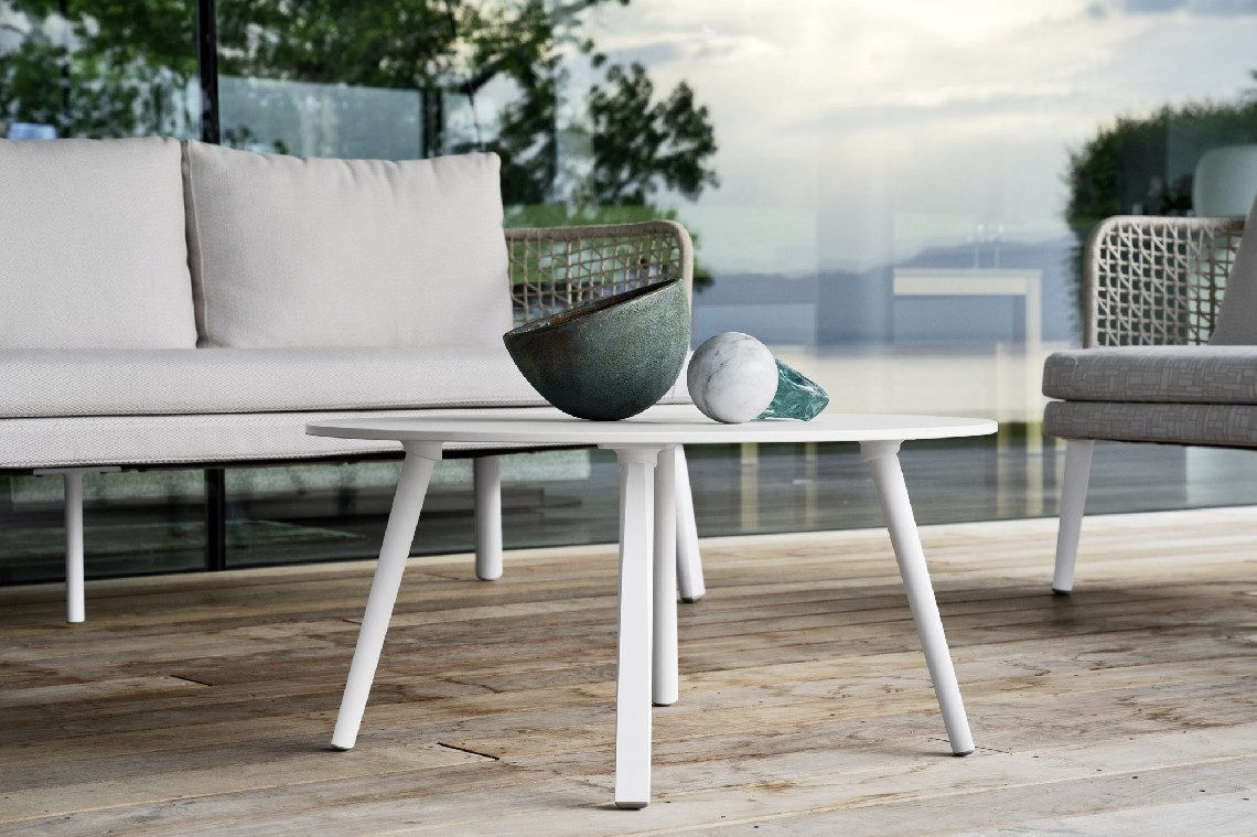 With its light and slender design, the Emma coffee table fits best in any outdoor environment from the garden to the terrace, from the veranda to the poolside. A precious complement that goes well with the seats of the homonymous collection, of which the particular tapered shape of the legs resumes.