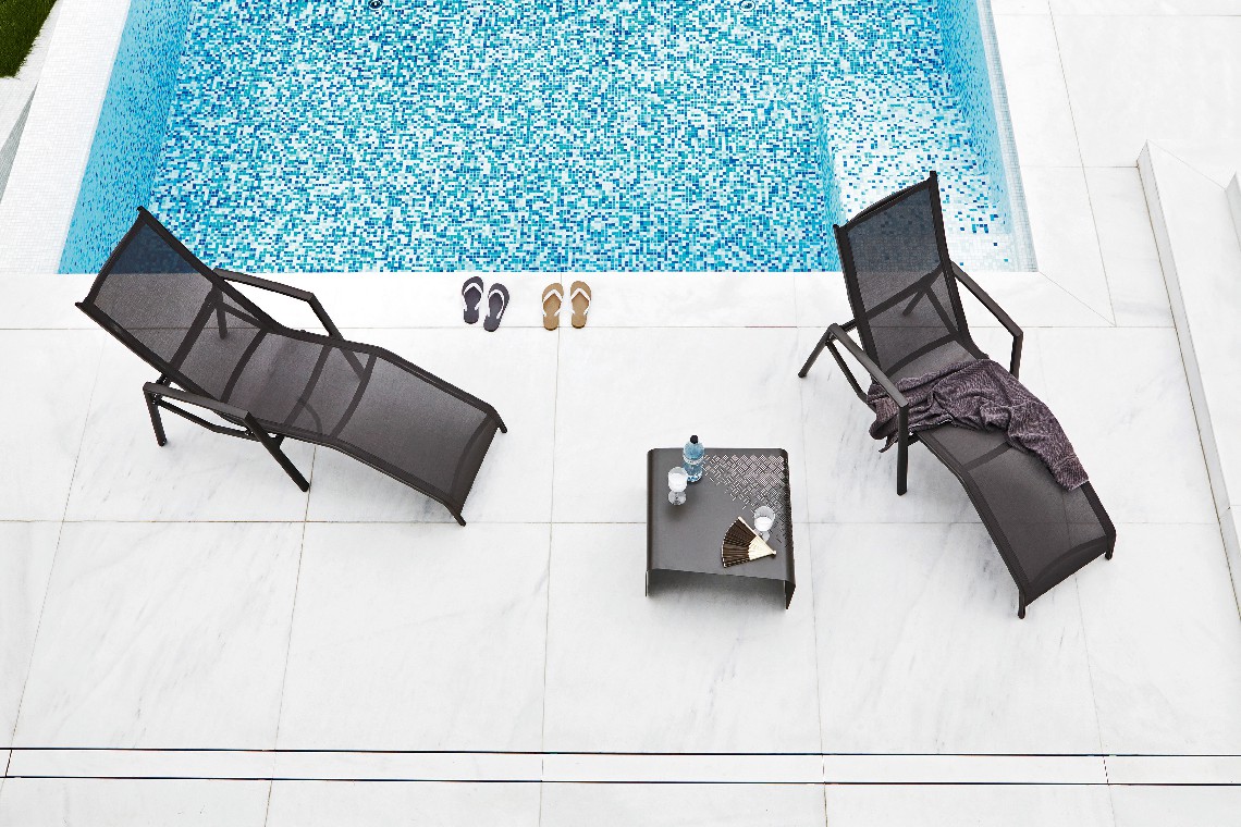 The Victor sunbed is the perfect place to indulge in complete relaxation, swinging slightly, perhaps after a pleasant sauna. The aluminum structure and the batyline perforated fabric cover make it ideal for the wellness area of hotels, resorts, farmhouses and gyms.