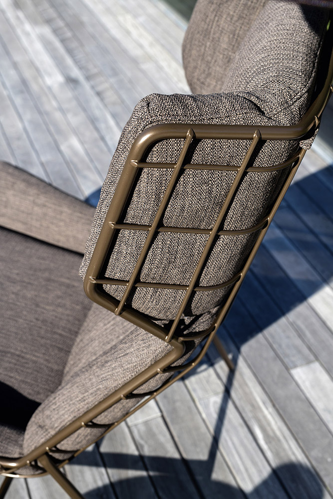 Summer Set bergère relax has a mesh structure in powder coated steel with C5M protective treatment, which makes the material extremely resistant to corrosion.