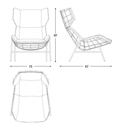 The design of the classic bergère armchair finds a new expression in a modern seat that combines aesthetics and comfort according to a perfect balance.
