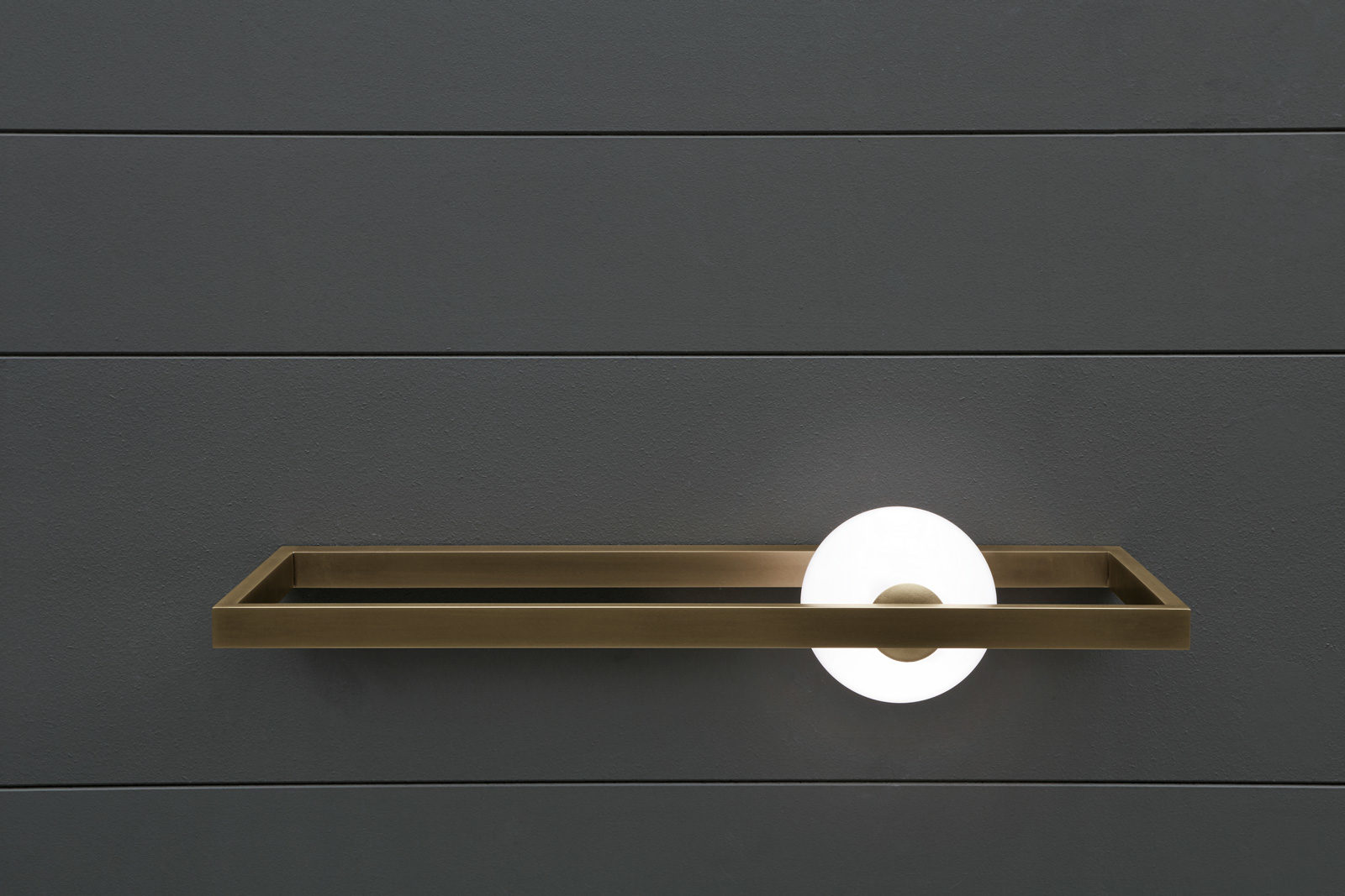 Wall lamp with direct and indirect light. Polished black nickel, polished gold, matte black nickel or light burnished brass structure.
