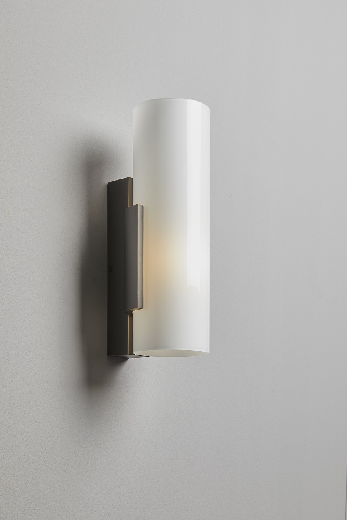 Wall lamp with diffused light. Metal structure, light or dark burnesched brass finiush.