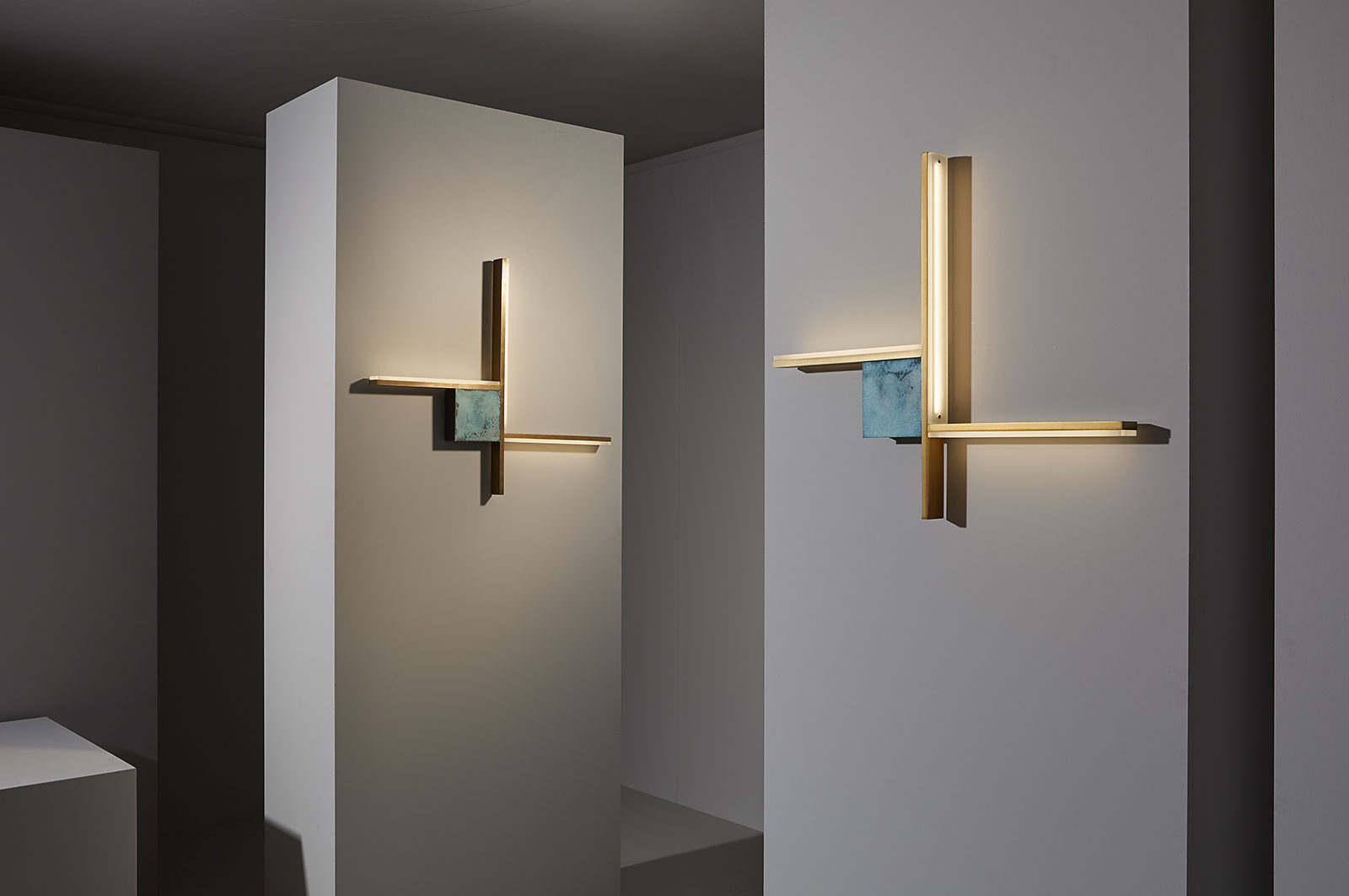 Delabré brass or matte black nickel structure. Pewter or antique copper plate. Satin glass diffusers th. 10 mm.