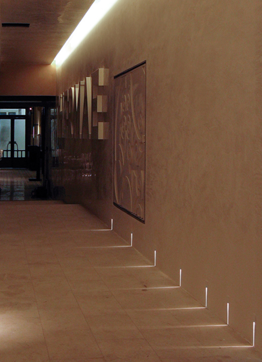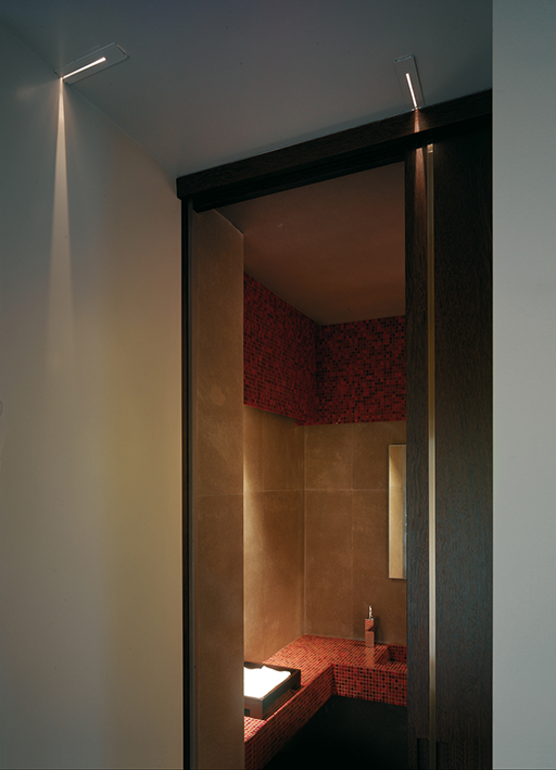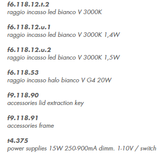 dry location rated recessed or fully concealed light fitting for indoor use. made of an powder coated and oxidised aluminium body with a frontal opening and a step beam of light effect. versions: raggio incasso led 40x170x300mm/1.6x6.7x11.8’’ wired with 3000K led source 1.5W 104lm with 120V 60Hz power supply included or not included, to be installed remotely. accessories: frame, lid extraction key. finishes: bianco V.