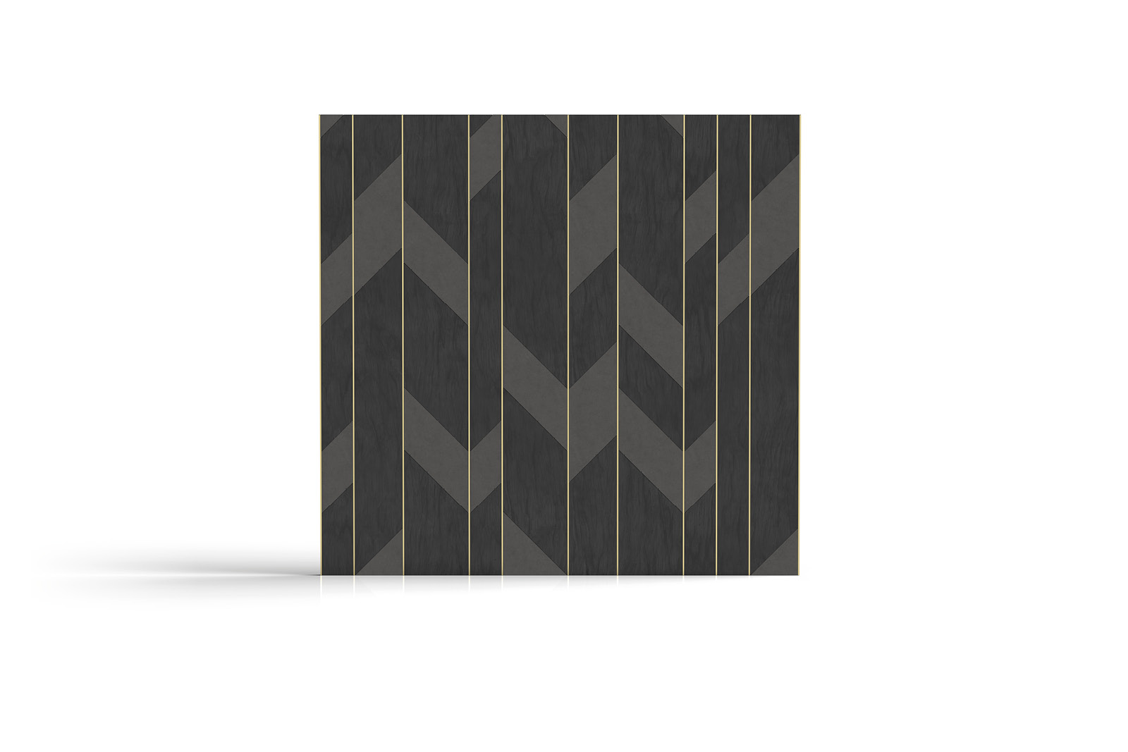 Hand made combination of panels in Black Bubinga burl veneer and grey nubuk col.6 with light gold chrome stainless steel inserts.