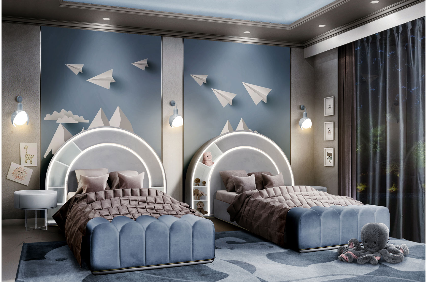 The periwinkle flower is a small flowering plant that has been in existence for over 200 years and has been included in nearly every wonderful fairy-tale. The Periwinkle flower serves as the main inspiration for this illuminating lighting piece. A small petal embraces the light, that will bright every idea and imagination of the little ones.