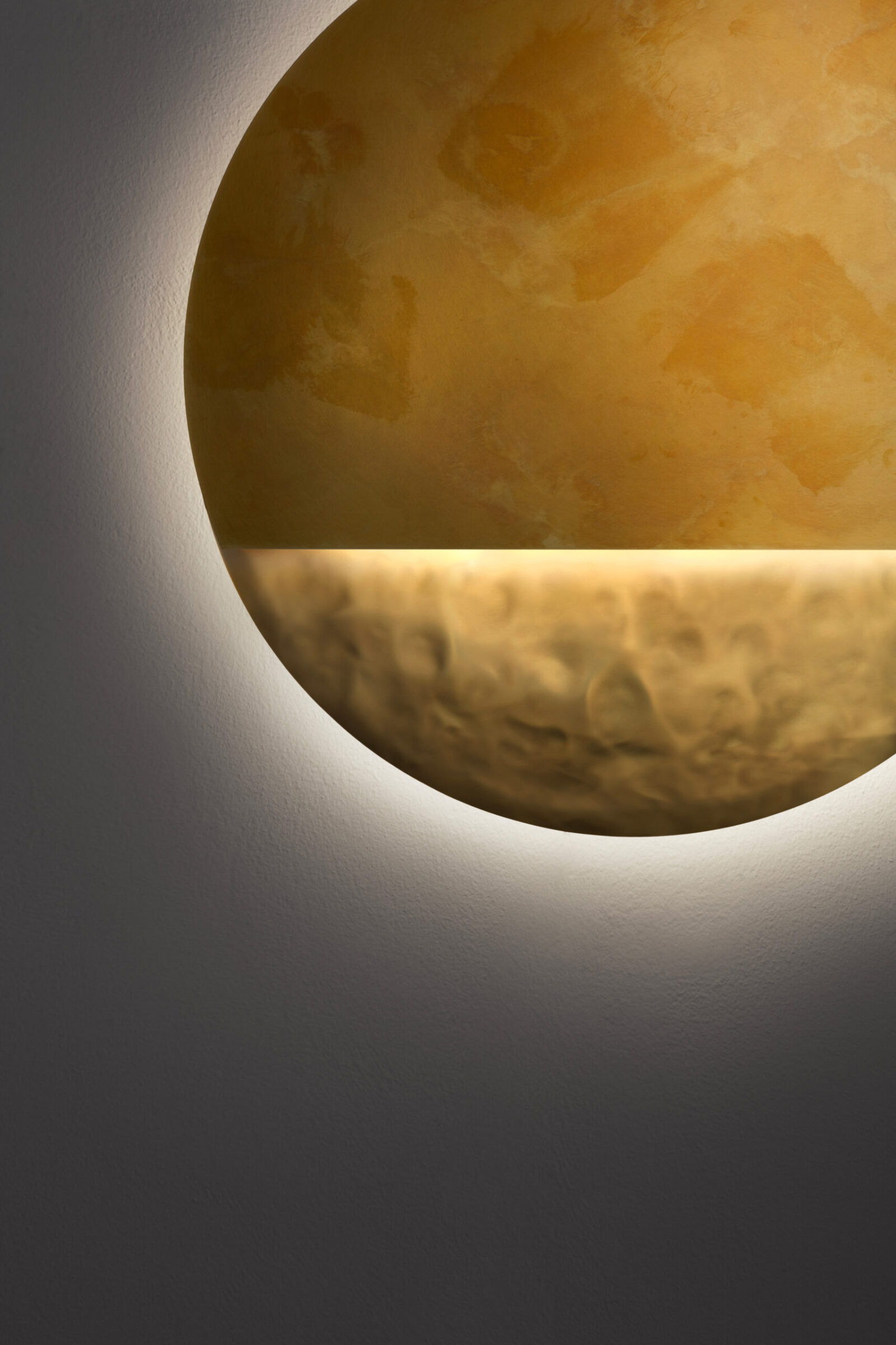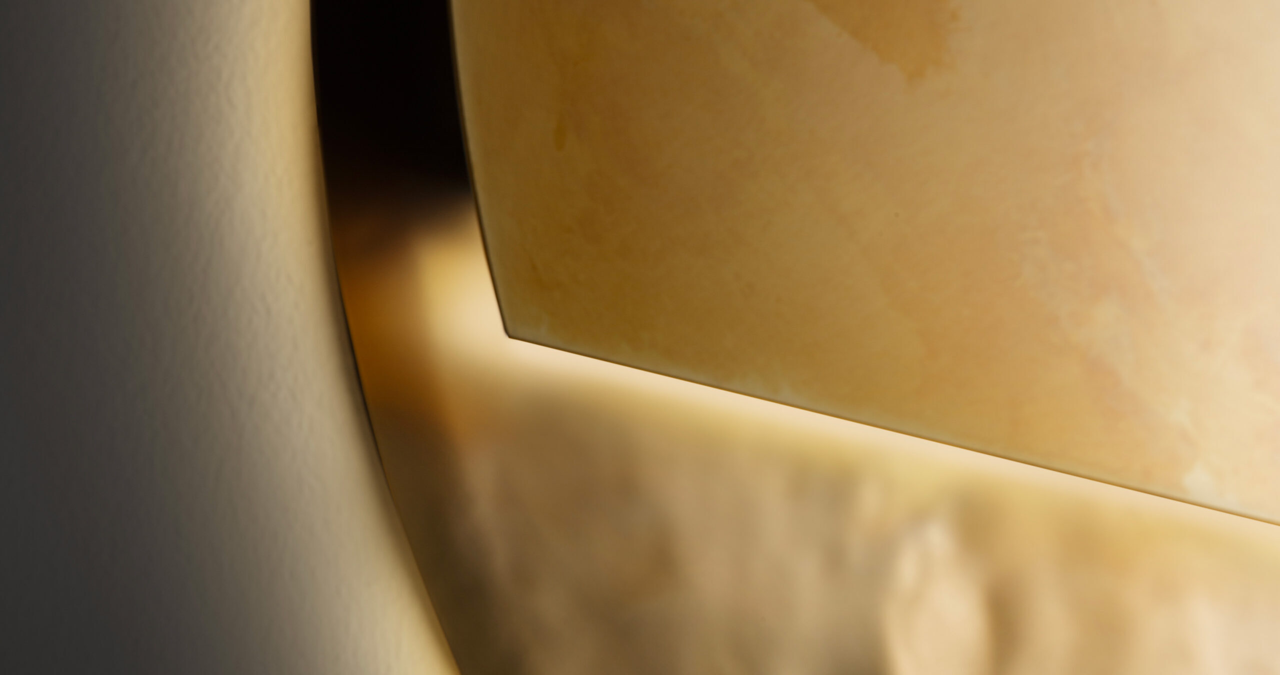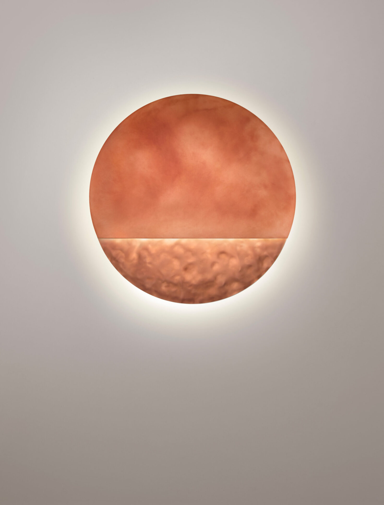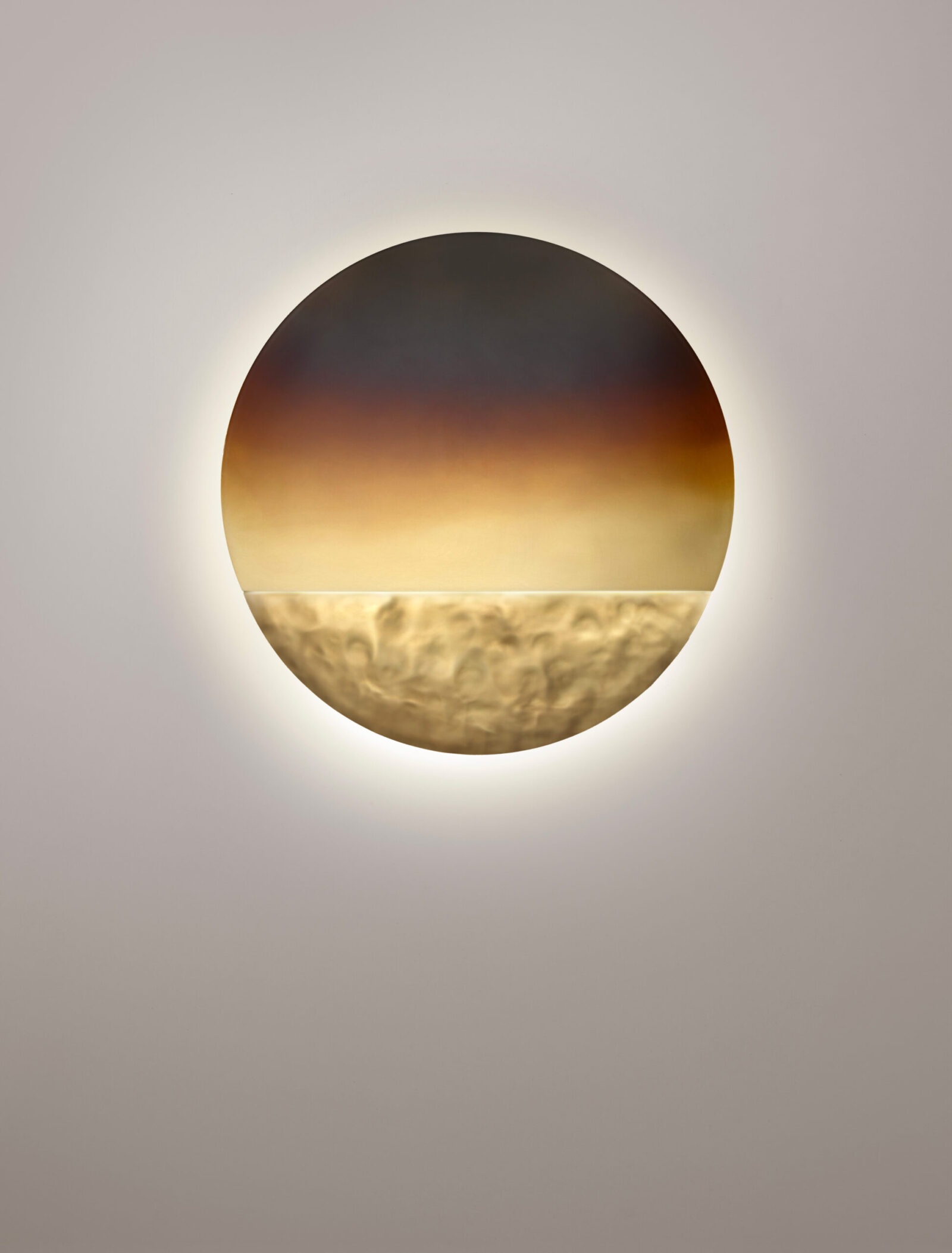 Alba e tramonto sono momenti carichi di intensità e fascino: un flusso di luce sempre in trasformazione, che oscilla per intensità e colore. Light&Shade immortala quell’istante preciso del giorno in cui il cielo terso si riflette in un mare calmo. Disponibili in rame, ottone e acciaio queste lampade a parete dalle dimensioni importanti celano la fonte luminosa che viene irradiata con morbidezza dalla circonferenza per creare una luce d’ambiente morbida e al contempo fungere da elemento decorativo.