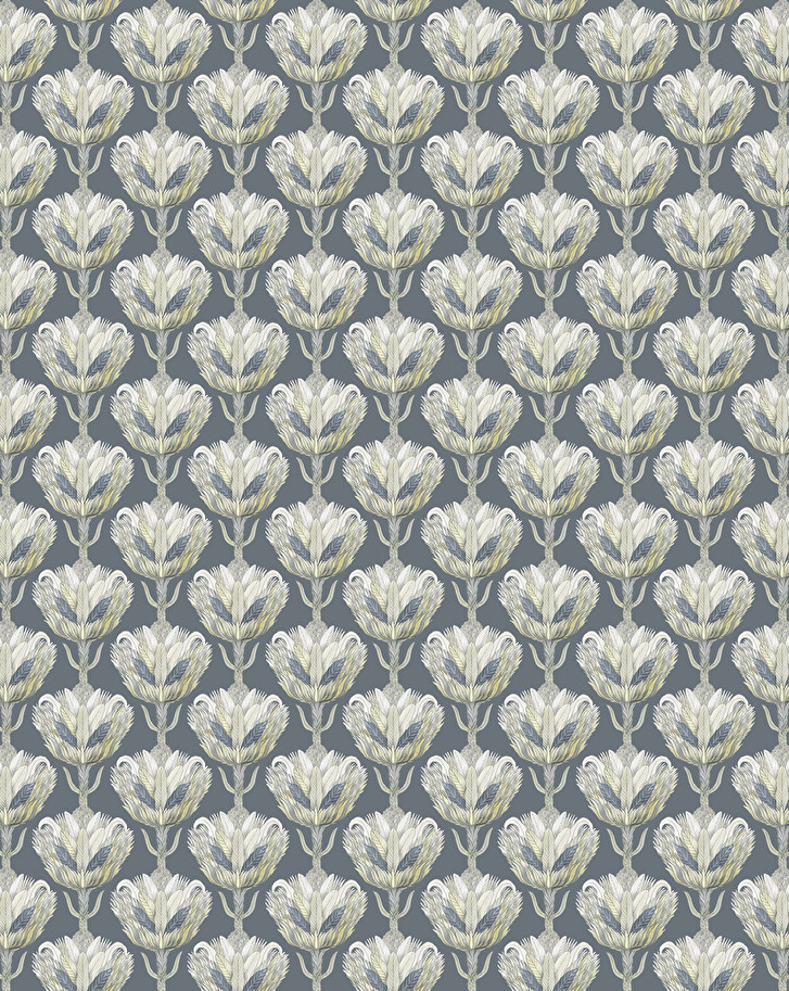 Wallpaper featuring a fantastical composition of feathers and petals in elegant pastel shades, designed by Francesca Greco. It is available in three colours.