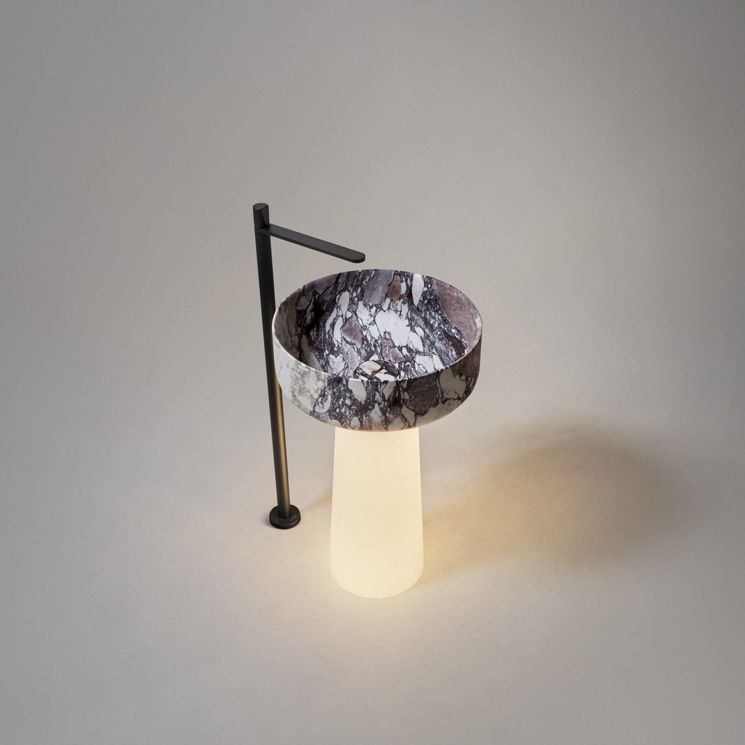 Tra luce e materia, tra solidità e leggerezza, tra colore, sfumature e un’aurea di magia. Albume Lux amplia la collezione di lavabi freestanding generati dalla sovrapposizione delle due figure geometriche che danno vita alla base e al bacino. Un equilibrio di forme e dimensioni, una proposta che amplia le funzionalità del lavabo aggiungendo la performance luminosa, grazie alla quale impreziosire l’ambiente bagno e generare atmosfere eleganti di sorpresa e stupore. La base del lavabo è realizzata in Flumood Dinamico, un materiale che nasce dalla continua attività di ricerca di antoniolupi, una resina compatta traslucida, che permette al fusto di diffondere la luce uniformemente in tutto l’ambiente bagno. Albume si trasforma in una vera lampada ribaltandone l’archetipo che prevede la fonte luminosa e il diffusore collocati nella parte superiore dell’oggetto.