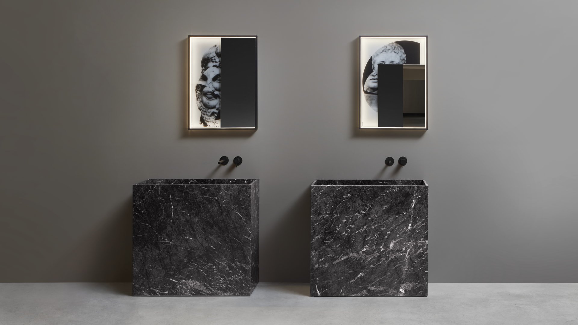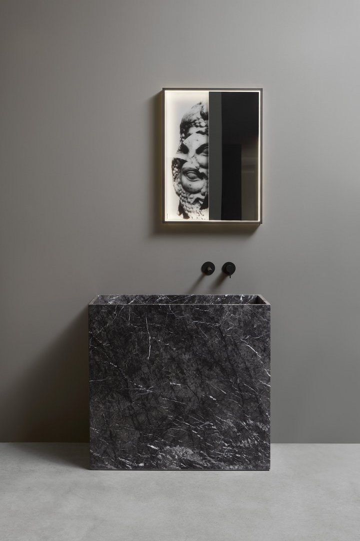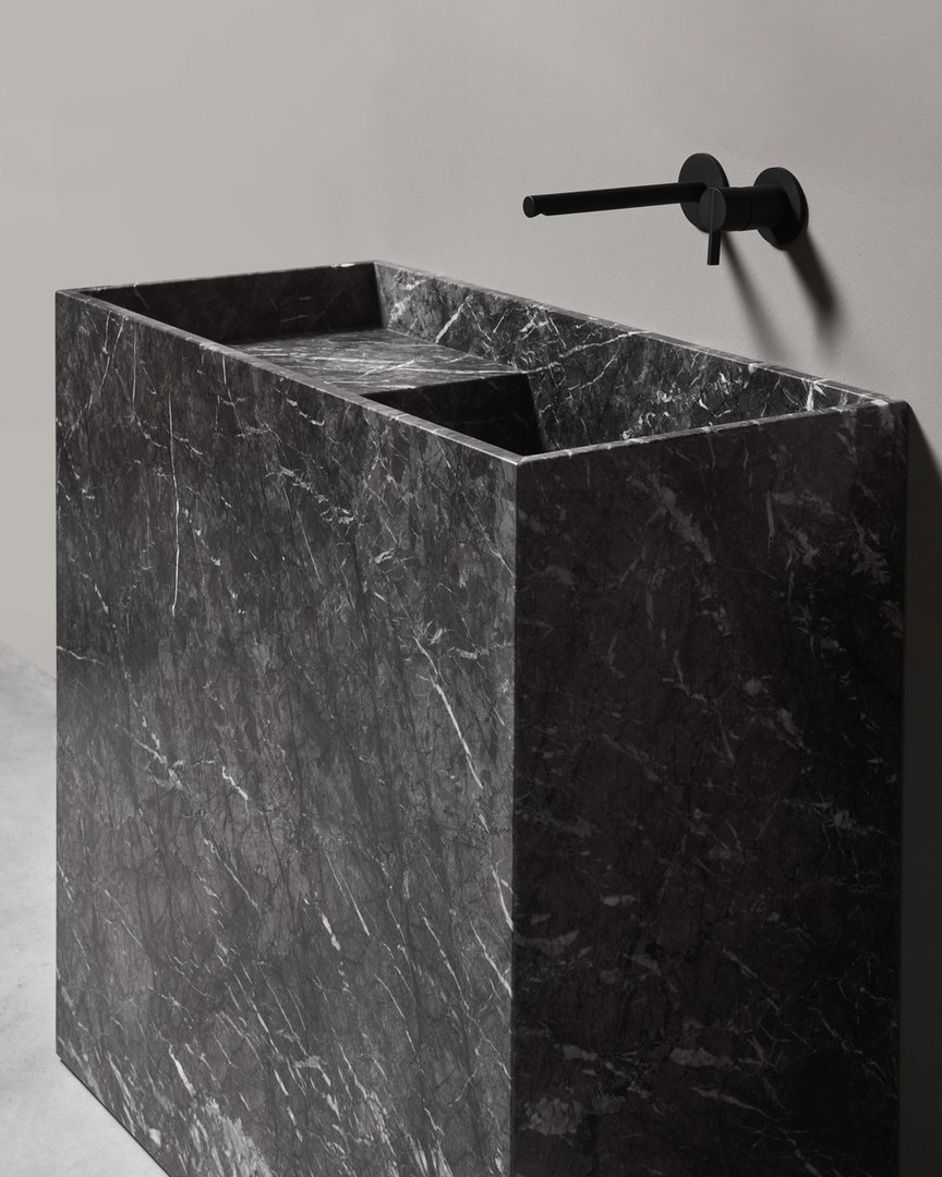 Le forme sono squadrate, le linee ortogonali disegnano geometrie pure e definiscono volumi con funzionalità diverse, lo spazio viene utilizzato al meglio grazie a proporzioni equilibrate e spessori sottili. La pietra è la grande protagonista di questi monoliti, la forma di MyStreet_Floor nasce dalla conoscenza del materiale e dal lavoro dell’uomo per dargli una forma contemporanea. Diverse le larghezze disponibili per il lavabo da terra che assume così conformazioni più compatte o slanciate. Un lavabo che sembra scavato nella roccia e porta con sé le tracce uniche di una storia, le sfumature, le leggere variazioni cromatiche, una serie aperta che permette di soddisfare le esigenze di ciascuno e di rendere unica e personalizzata l’area lavaggio.