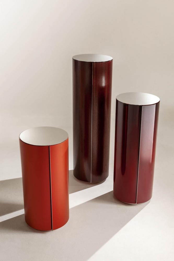 Set of cylindrical containers with a diameter of cm. 50 and realized in thress heights. The multicolored "Lacca" finish was created exclusively for Laurameroni and the colors are available from the collection.