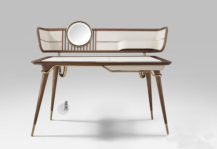 造型輕盈而流暢,圓鏡置于屏風之上,好似一輪明月爬上窗棱。
