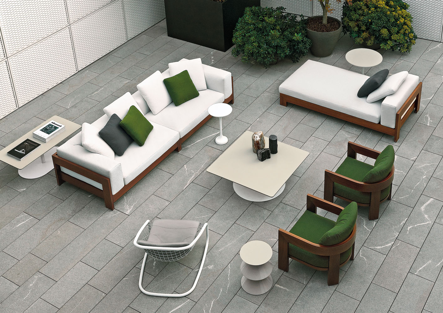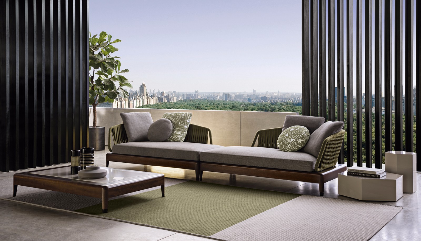 Minotti—Alison—Iroko系列,純色的布料加上跳躍的綠色抱枕,